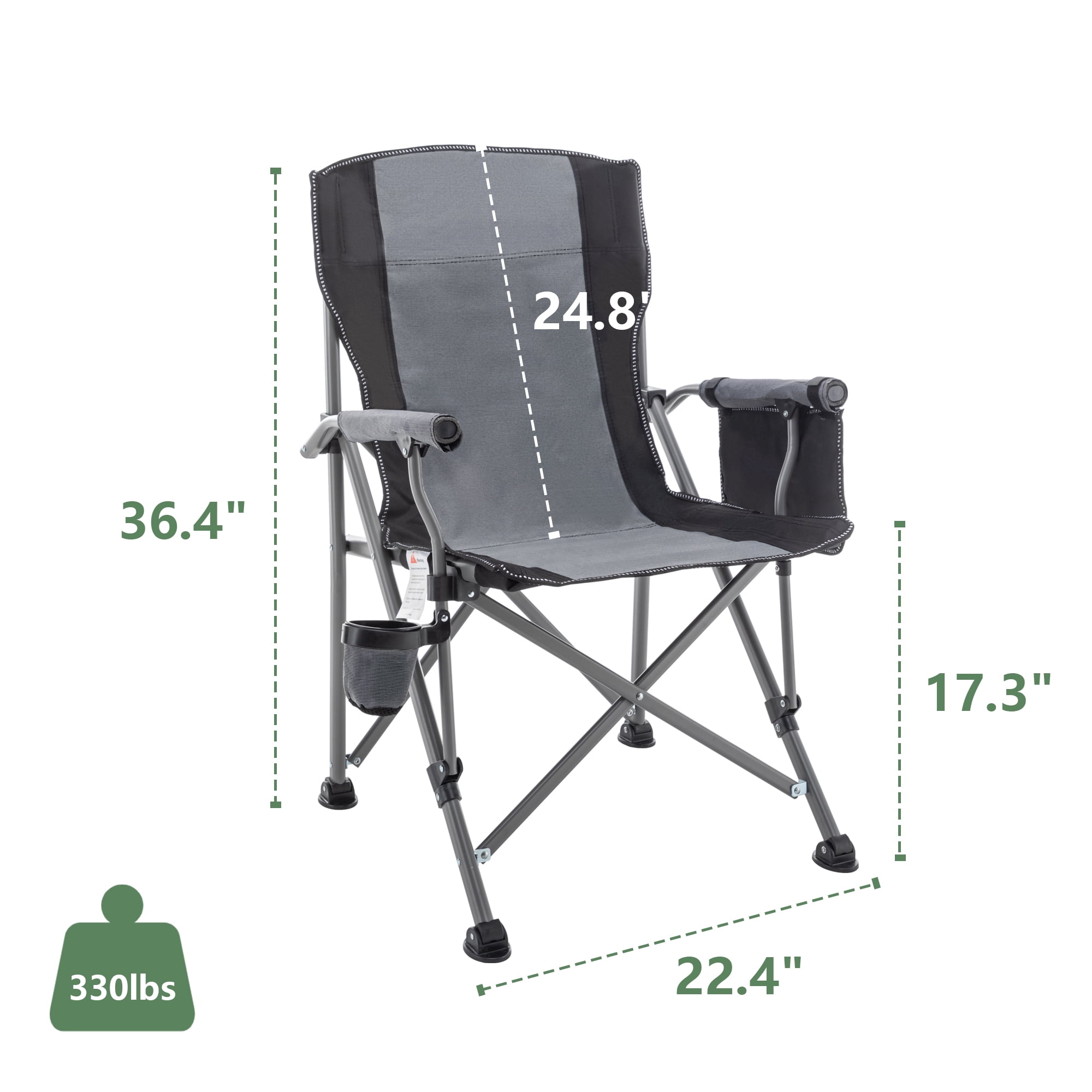 【Comfortable Seating】Designed with ergonomic,whether you’re basking in the sun or savoring a meal, our folding camp chair offers a comfortable seating surface that enhances your outdoor relaxation experience. 【Durable and Reliable】 Crafted with a robust powder-coated steel tube frame and 600D padded Oxford fabric, our camping chair is designed for durability, boasting a weight capacity of up to 330lbs, ensuring the stability and security you require. 【Extra Storage Spaces】 The durable cup holder and armrest at the perfect height enable you to relax in comfort. A side storage pocket holds your cell phone, notebook, magazines, and more. 【Wide Applicability】The folding camping chair is perfectly suitable for various occasions, including lawns, gardens, swimming pools, yards, and beaches. 【Customer Guarantee】Free replacement of damaged parts within 1 year.We provide you a professional after-sales service. If you are not satisfied with the purchase, please feel free to contact us. We will reply to you within 24 hours.