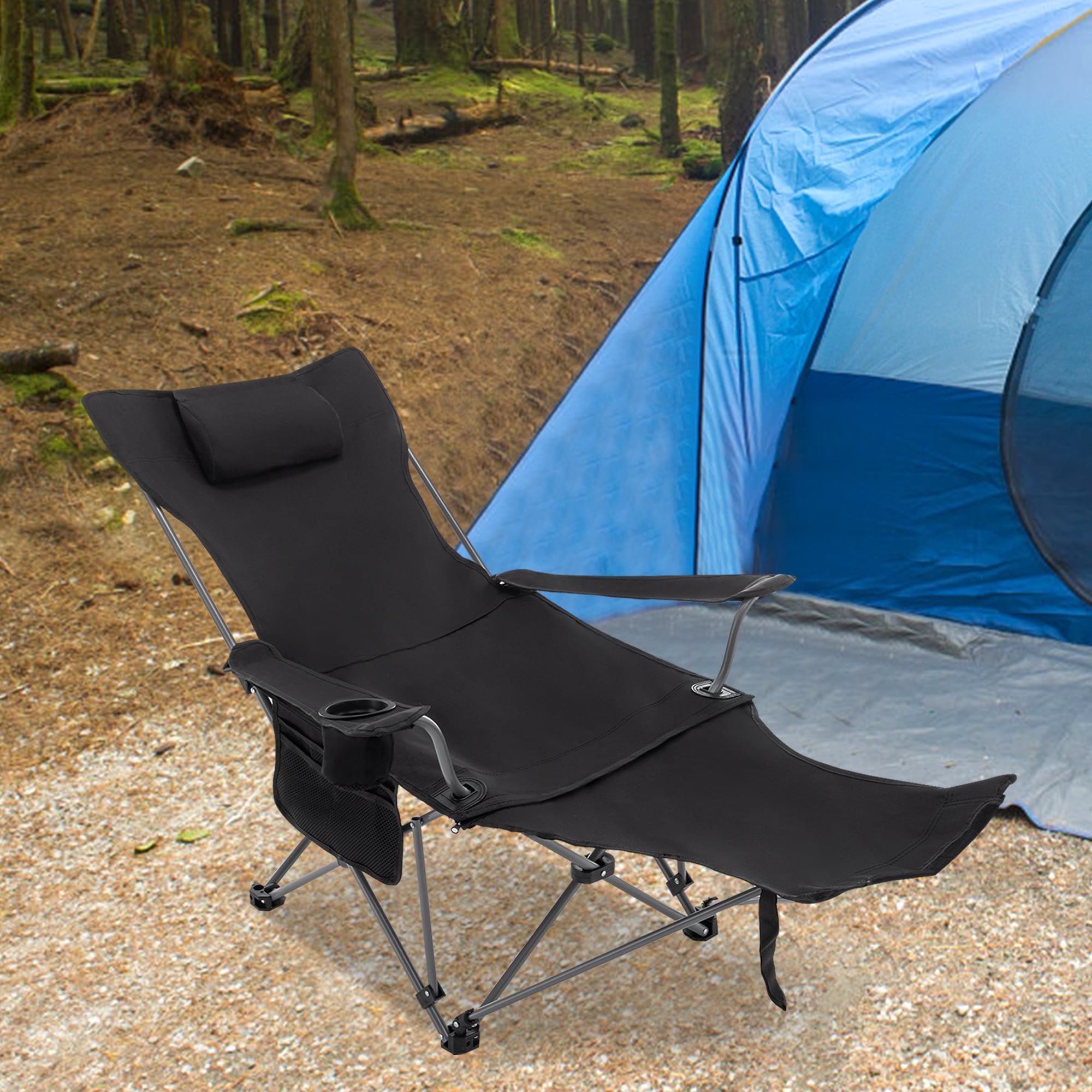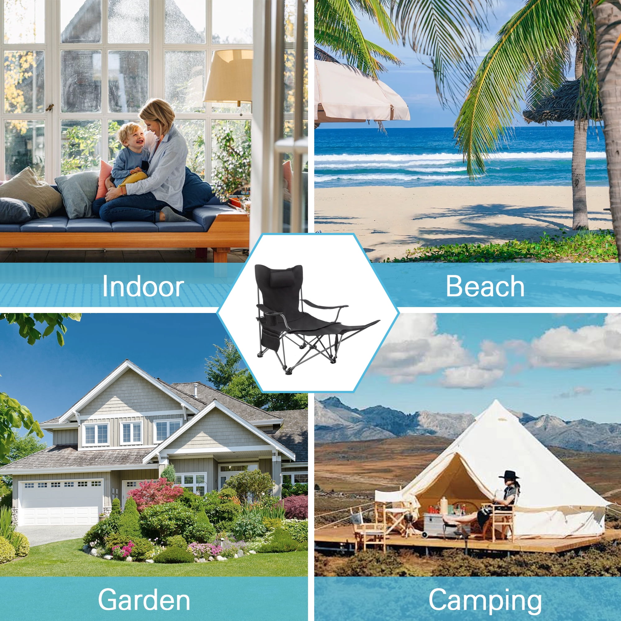 【Comfortable and Adjustable】Crafted with ergonomic principles in mind, featuring a 4-position adjustable backrest to support your back and legs, enabling you to enjoy unparalleled comfort. Moreover, you have the option to add or remove a footrest, sponge pillow, and cotton pad as desired to further enhance your seating experience. 【Sturdy and Durable】The camping chair has a durable stainless steel frame capable of supporting up to 265 pounds, meeting the requirements of most people. It utilizes 600D Oxford fabric, known for its tear resistance, stability, and sturdiness. 【Lightweight & Portable】Enjoy effortless travel and speedy setup with our ultra-lightweight design. This chair conveniently folds away in minutes and includes a carry bag, ensuring it’s your ideal companion for impromptu adventures. 【Applicable Occasions】This camping chair is versatile, fitting for various settings. It’s a great option for both indoor and outdoor use, serving as an excellent office relaxation chair. Additionally, this chaise lounge chair is perfect for outdoor activities like camping, backyard gatherings, lawn lounging, concerts, beaches, and more. 【Customer Guarantee】Free replacement of damaged parts within 1 year.We provide you a professional after-sales service. If you are not satisfied with the purchase, please feel free to contact us. We will reply to you within 24 hours.
