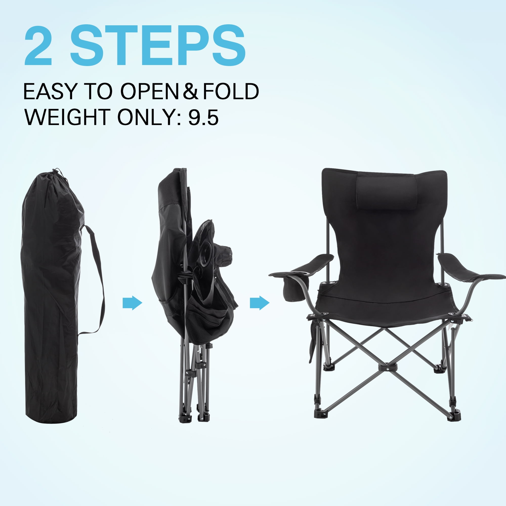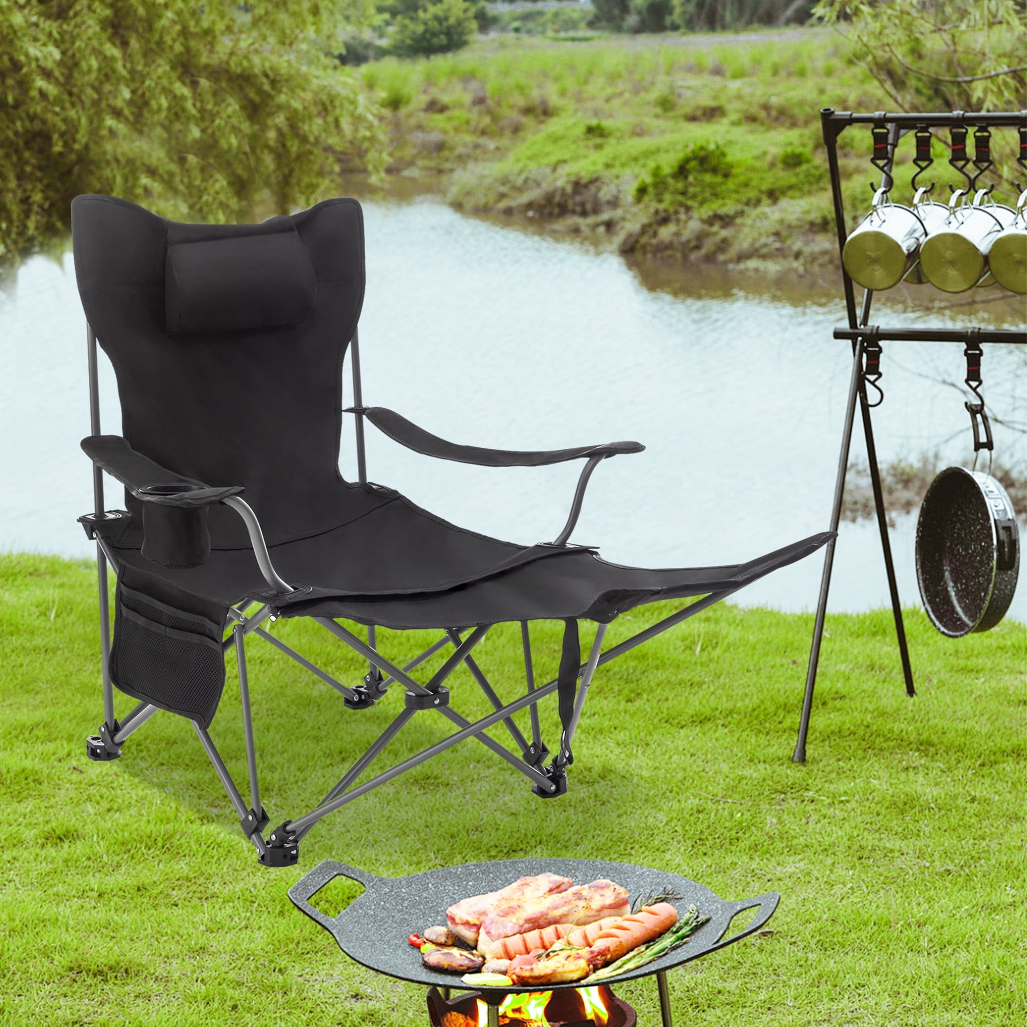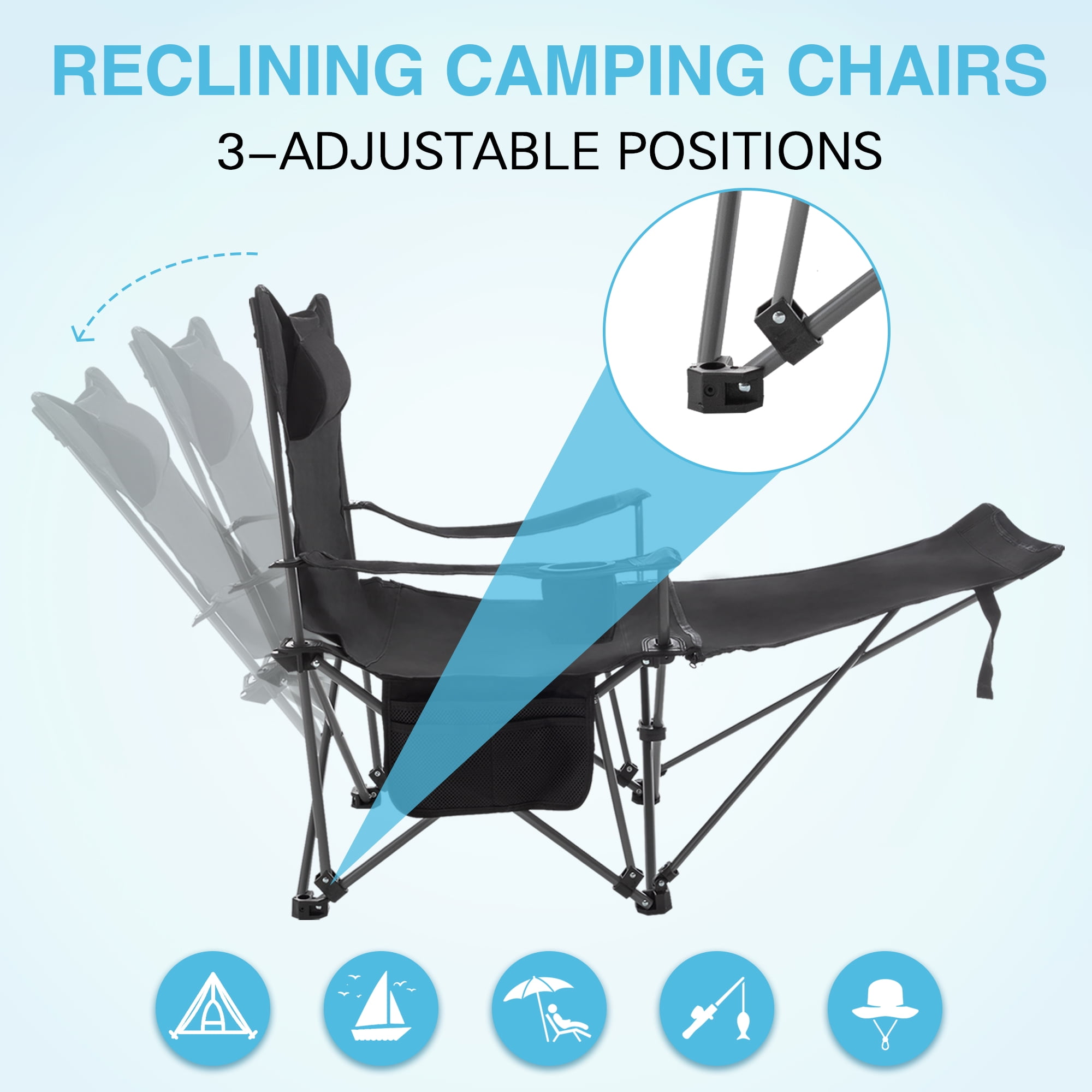Andeworld Reclining Camping Chairs with Removeable Footrest,Lounge Chairs with Headrest,Adjustable Folding Chairs for Adults,Black