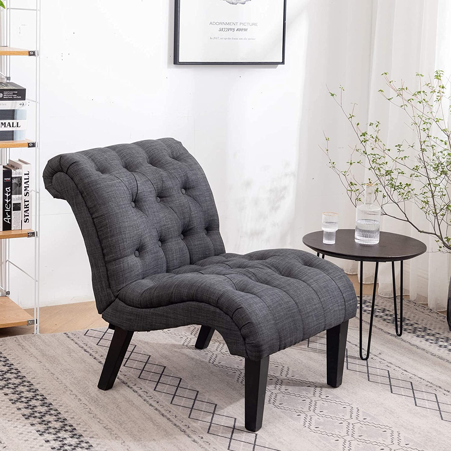 【Size Information】:Overall Size: 27.2″W x 39″D x 32.7″H, Weight Capacity is 300lbs. Easy assembly. 【Sturdy & Durable】:Made of fireproof sponge, cotton linen fabric, and solid wood legs.Study enough to hold the weight of an adult. 【Wide Applicability】:This chair is a wonderful addition to any rooms such as living room,bedroom and so on.Perfectly match with your furnitures,which brings a sense of modern to your home decor.Bring you a comfortable experience. 【Comfortable Experience】:This armless accent chair is as comfortable as it is attractive. The seat and back are padded for great relaxation 【Service Guarantee】Your satisfaction is our top priority, please rest assured to purchase our products. If you are not satisfied with our products or have any questions, please feel free to contact us at any time.