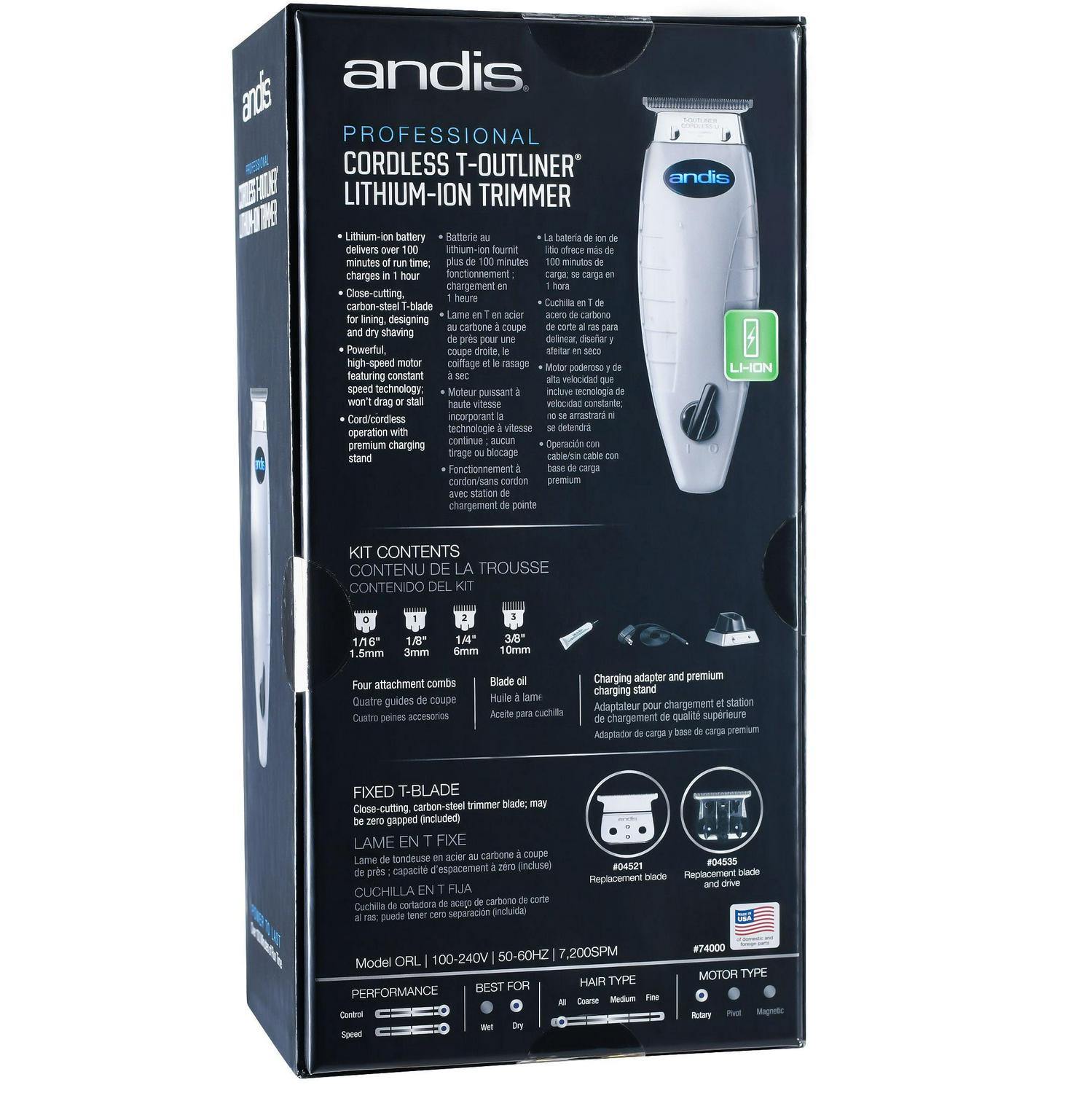 Andis Cordless T-Outliner Trimmer with BeauWis Blade Brush
