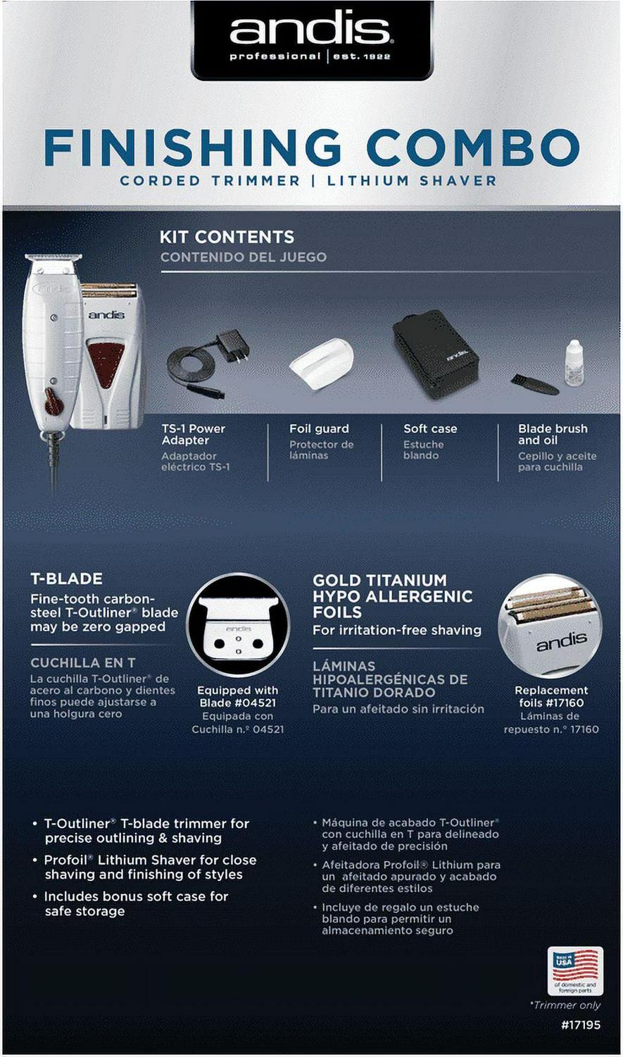 Andis Professional Finishing Combo T-Outliner Trimmer and Profoil Lithium Shaver 17195