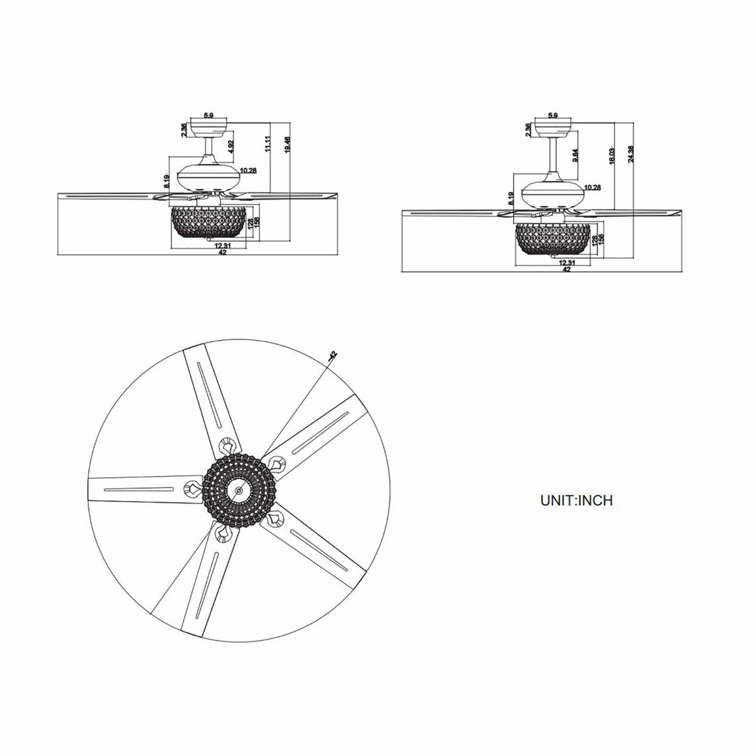 The Angel 3-light Crystal Chandelier Ceiling Fan (Optional Remote) features an elegant and functional design with a dark satin brown metal finish. It uses three lights to illuminate the high-quality clear crystals that shape the glamorous crystal bowl shade. This 5-blade ceiling fan will add an elegant touch to your living room, kitchen or bedroom. The downrod mounted assembly provides cooling, and the three selectable motor speeds (reversible) will ensure you will find just the right comfort level.