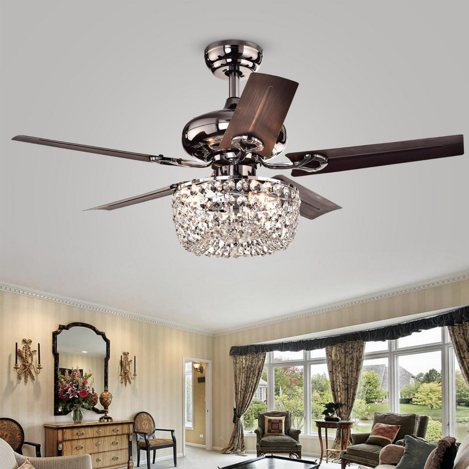 Angel 3-light Crystal Chandelier 5-blade 43-inch Brown Ceiling Fan (Optional Remote)