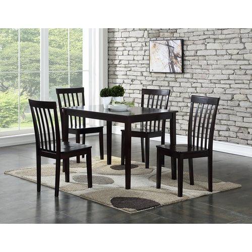 This Kayla 5-piece dining set includes a contemporary rectangular table and 4 chairs. A perfect addition to your eating area for casual dining or entertaining guests. This set can easily accommodate 4 adults.
