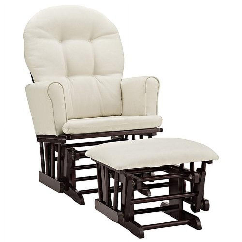 Gently comfort and calm down your newborn as you relax in the gentle gliding motion of this Brookisde Semi-Upholstered glider and ottoman, White finish with Gray cushions. This glider and ottoman moves smoothly and its silent glide ensures little ones are not disturbed. The padded arms of the glider are soft. The strong wooden frame of this glider and ottoman set is made of high-grade materials and is very stable and sturdy.