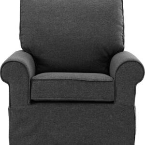 The Angel Line Natalie Upholstered Swivel Glider will help complete your nursery. After full assembly, it has a metal base that allows for both 360-degree swivel and smooth gliding functions. Calm your baby and soothe them to sleep in comfort and with ease. Though mainly constructed for nursery use, this recliner will easily fit well in any room in the house from the den to the basement. The neutral scheme of the dark gray fabric chair will match most decorative home palettes and make for a welcome addition to your home furniture.