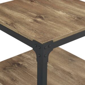 Set a stack of books you ve been wanting to read and a lamp on these end tables. Including two rustic angle iron side tables, that way you can mix things up every once in awhile in your living room by either placing them side by side or across the room. One by your couch, the other by a side chair, or next to each other centered between your seating arrangement, for rustic visual element that ll complement your dcor. With hardware details on each corner made of powder coated metal and a table top and shelf crafted from high-grade MDF.