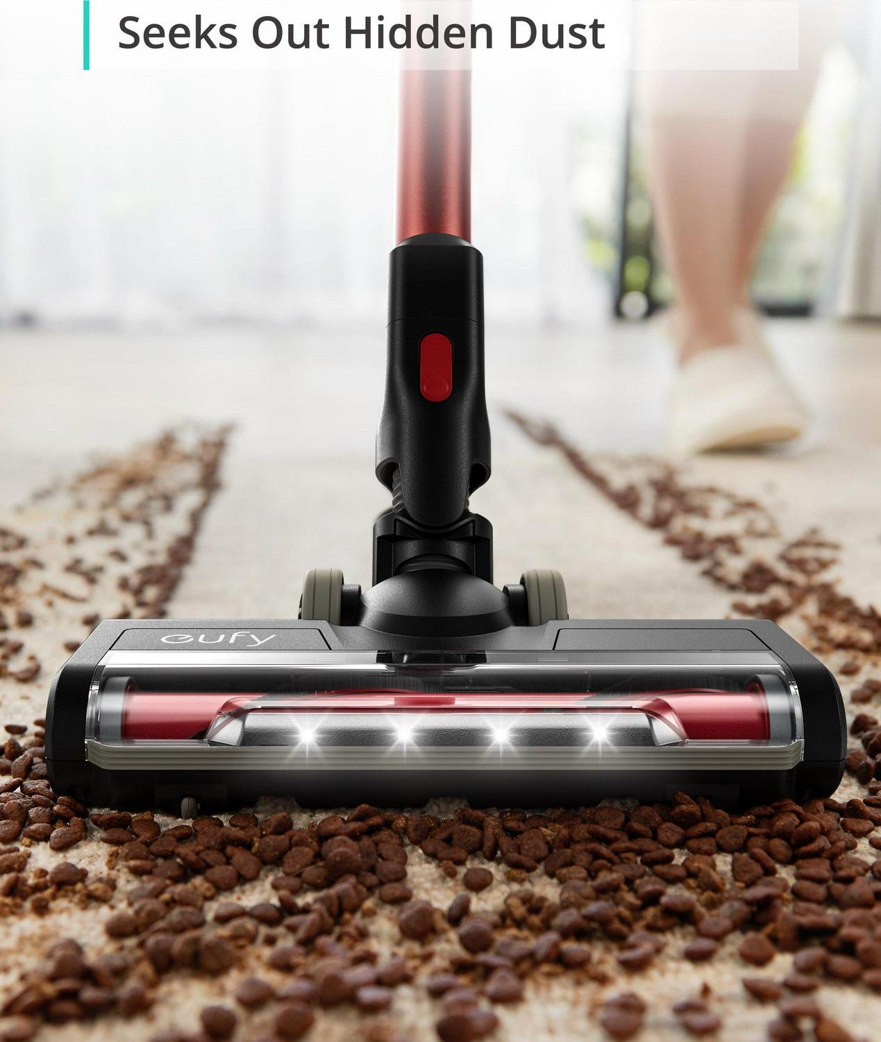 – Hyper-Flex Head with LED Lights: Navigate around sharp bends and corners as you effortlessly cover every inch of your home. The LED lights built-in to the brush head allow you to seek out hidden dust.