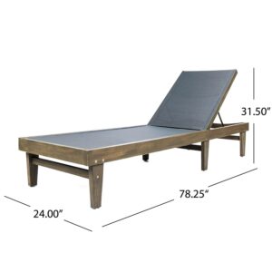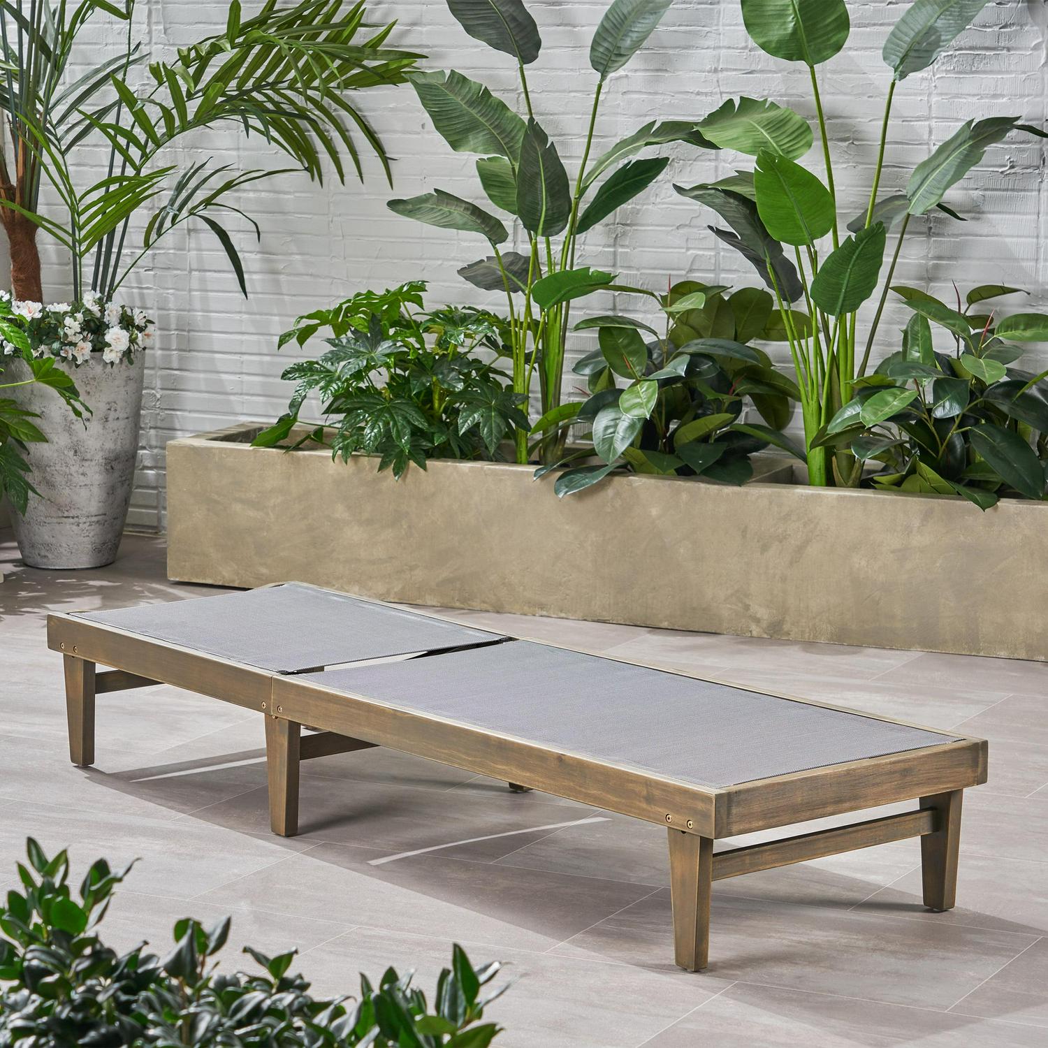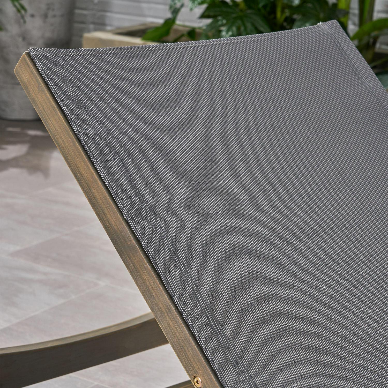 Annalee Outdoor Acacia Wood Chaise Lounge, Grey, Dark Grey