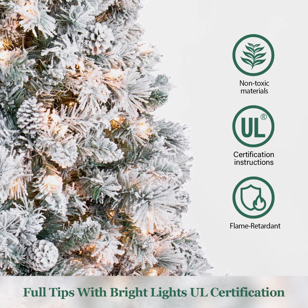 🎄Another Me Snow Flocked Design: Crafted with 800 branch tips and snow flocked leaves, this 6-feet-tall heavy snow flocked created an atmosphere of romantic winter, making this Christmas tree become the center of the attention in the house 🎄Pre-lit Lights: This christmas tree is re-installed with 300 warm white lights on branches for no assembly and ease to use. 🎄Firm Metal Stand: Another Me Christmas tree uses the X-shaped metal stand to imporve stability and keeps the tree upright all season and protect your floor 🎄Perfect Sizing: The tree stands 6 feet tall and 42 inches in diameter at the base. It will take only a few minutes of branch shaping to bring it a full and lush form. 🎄Easy Assemble and Shaping: Hinged branches in 3 sections. Comes with a pair of gloves for simple storage and easy setup. . .