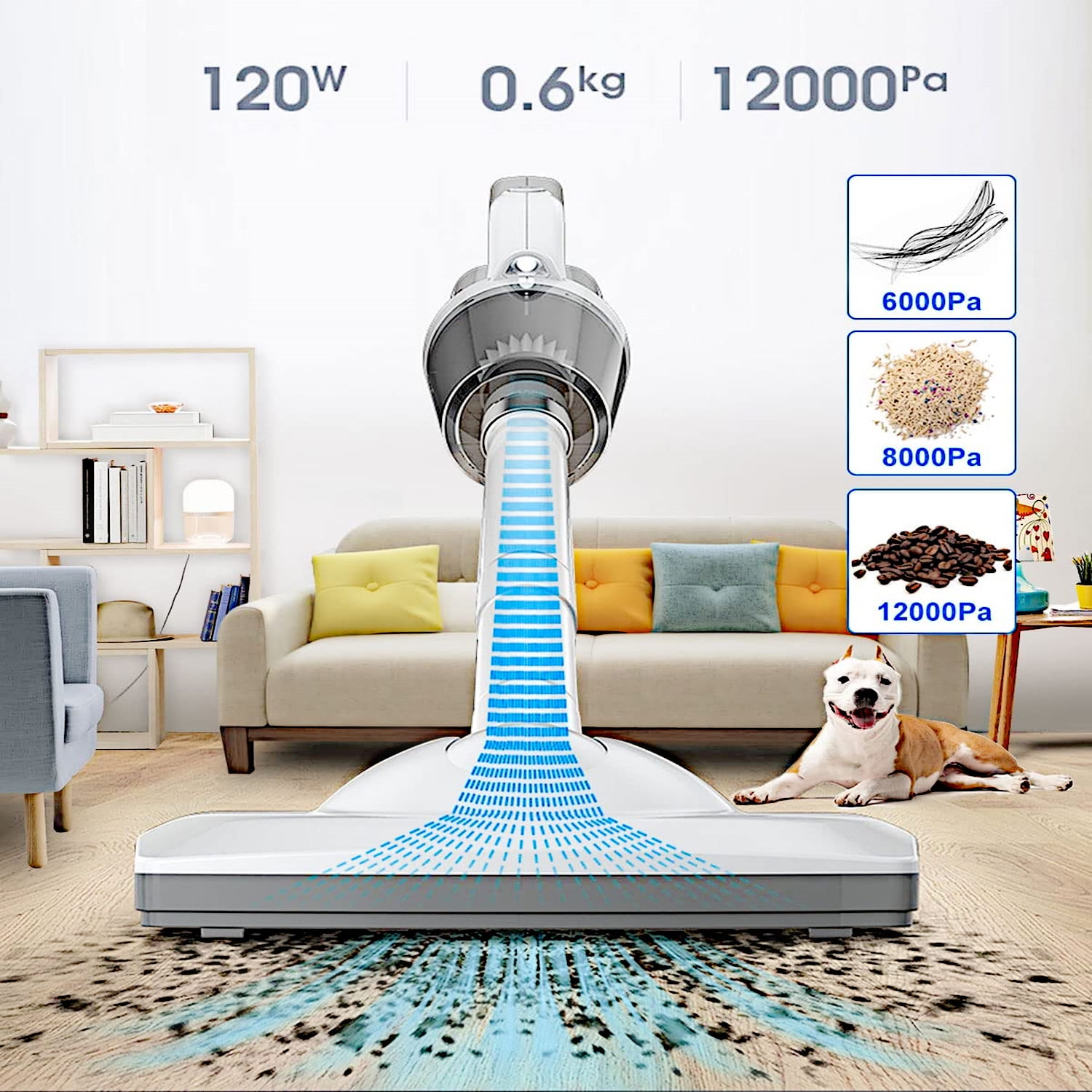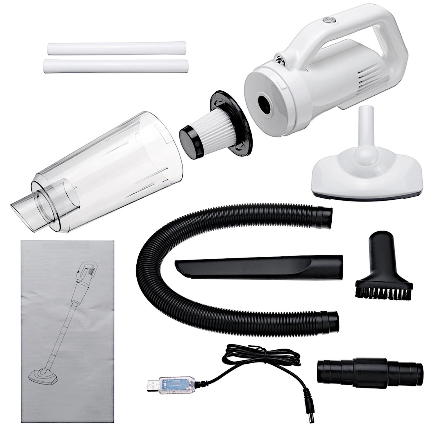 Specifications: Product Material: ABS Rated Voltage: DC 11.1V Vacuum Power: 12000Pa Rated Speed: 43000rpm Battery Capacity: 3 x 2000mAh Charging Method: 5V USB Charging Cable USB Cable Length: 1M Rated Power: 120W Noise: ≤84dB Operating Temperature: -20℃~+50℃ Product Size: 390 x 100 x 135mm Dust Cup Capacity: 0.53L Weight: 600 G Feature: 12000Pa Powerful Suction Handheld Vacuum Cleaner Different Detachable Nozzles Meet All Cleaning Needs With LED Light, Keep Every Dark Corners Cleaning. Built-in 3 x 2000mAh Lithium Battery, Cleaning Time up to 20 Mins. Easy to Disassemble and Washable Package Content: 1 x Handheld Car Vacuum 1 x Brush Nozzle 1 x Long Nozzle 1 x Extension Hose 1 x USB Charging Cable 1 x Floor Brush 2 x Floor Brush Connecting Pipes 1 x User Manual Tips: The filter must be installed when in use. Do not inhale foreign objects that are burning. Do not start the car while operating the vacuum cleaner. Do not wipe the body with gasoline or volatile detergents. The front shell cannot be removed when the motor is rotating. When removing foreign objects in the gap, please put on the long nozzle. Do not expose it to direct sunlight, and do not use it in high temperature and high pressure places. This product is not a toy, please do not let children play with it alone to avoid danger. At the same time, the product should be placed in a dry place.