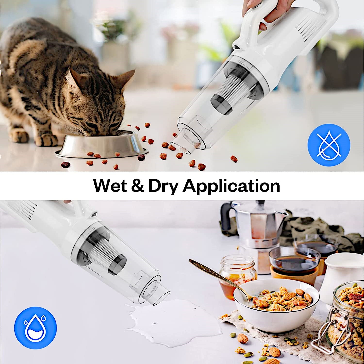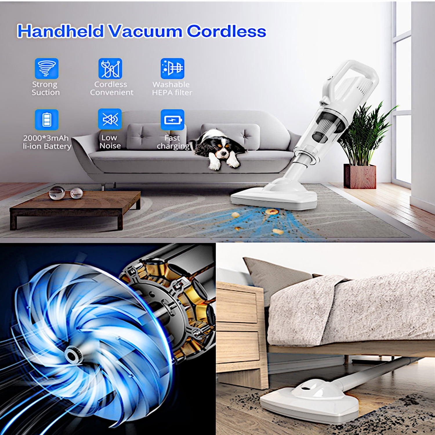 Our handheld vacuum cleaner has 12000Pa strong suction can absorb small dust, dirt, debris and hard-to-reach crumbs quickly. Cordless car vacuum cleaner build in 3x2000mAh lithium battery, 3-4 hours fully charge and cleaning time up to 20 minutes. Rechargeable vacuum cleaner comes with brush nozzle, long nozzle, floor brush, extension hose and floor brush connecting pipe, they can be easily assembled into various combinations for versatile cleanings, meet all cleaning needs. Handheld car vacuum also features LED lights to keep every dark corners cleaning. Portable Handheld vacuum is a wet and dry vacuum cleaner, attention should be paid to the water accumulation height of the front cover when absorbing moisture. The handheld vacuum cleaner’s filter is easy to disassemble and washable. In order to make the dust absorption effect better, it is necessary to clean the filter bag frequently. When repairing this product, it should be in accordance with the requirements of the instructions, and the filter part of the product should be kept clean at all times.
