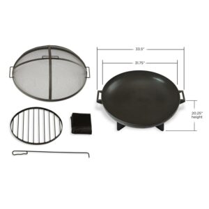 – Includes: spark screen, log poker tool, grate, and protective storage cover