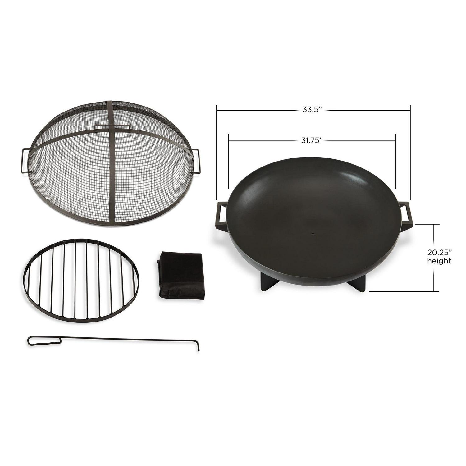 – Heat resistant, powder coated steel construction|Includes: spark screen, log poker tool, grate, and protective storage cover|Available in Gray or Rust Finishes|Do not use on wooden decks, high temperatures may case damage|90 day limited warranty. Assembly required