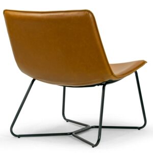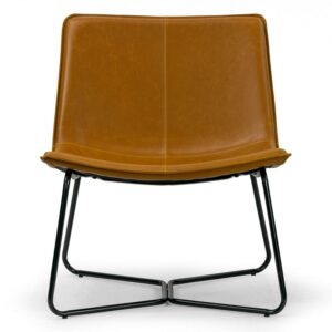Anwar Light Brown Faux Leather Wide Seating Accent Chair with Metal Legs