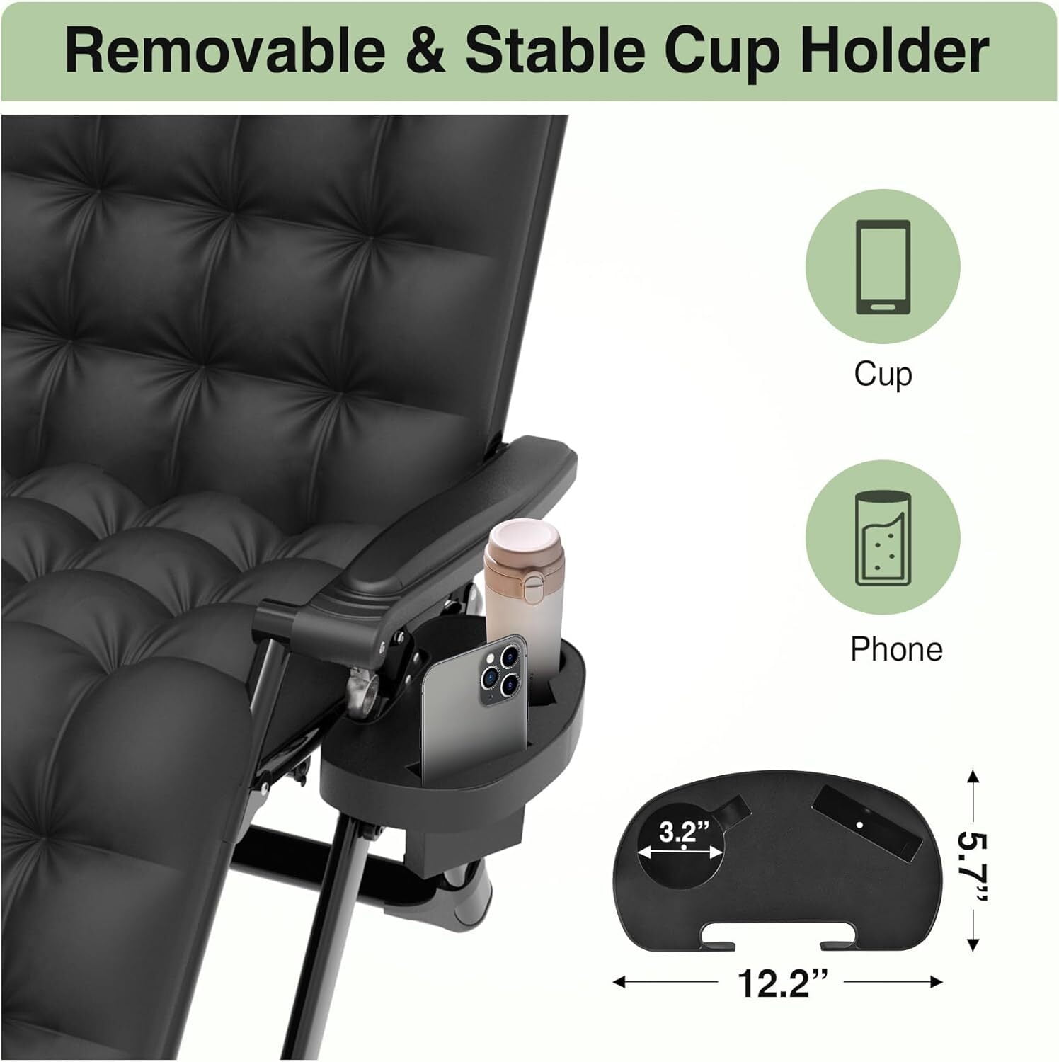Anyrose Zero Gravity Chair Indoor Adjustable Folding Reclining Lounge Chair with Removable Cushion, Headrest and Cup Holder, Black