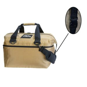 AO Coolers Soft-Sided Ballistic 24 Pack Cooler, Tan – The AO Coolers Ballistic Series is a great choice for any sportsman. The 1680 Lightweight Ballistic Polyester Material is durable, rugged, water and abrasion resistant. This lightweight Ballistic fabric will hold up well against extreme temperatures and outdoor elements. Featuring a soft sided exterior, 3/4″ thick, high density closed cell foam insulation with a leakproof, eco-friendly, welded TPU liner to keep drinks and food ice cold. Includes a comfortable, removable shoulder strap. Keeps ice all day. Includes four tie-down hooks to strap it down. Perfect for boating, fishing, hunting, parties, sporting events, and picnics. cans be used to keep food warm. Folds flat for storage. Capacity: 30 Quarts or 24 cans, plus 14 lbs. of ice.