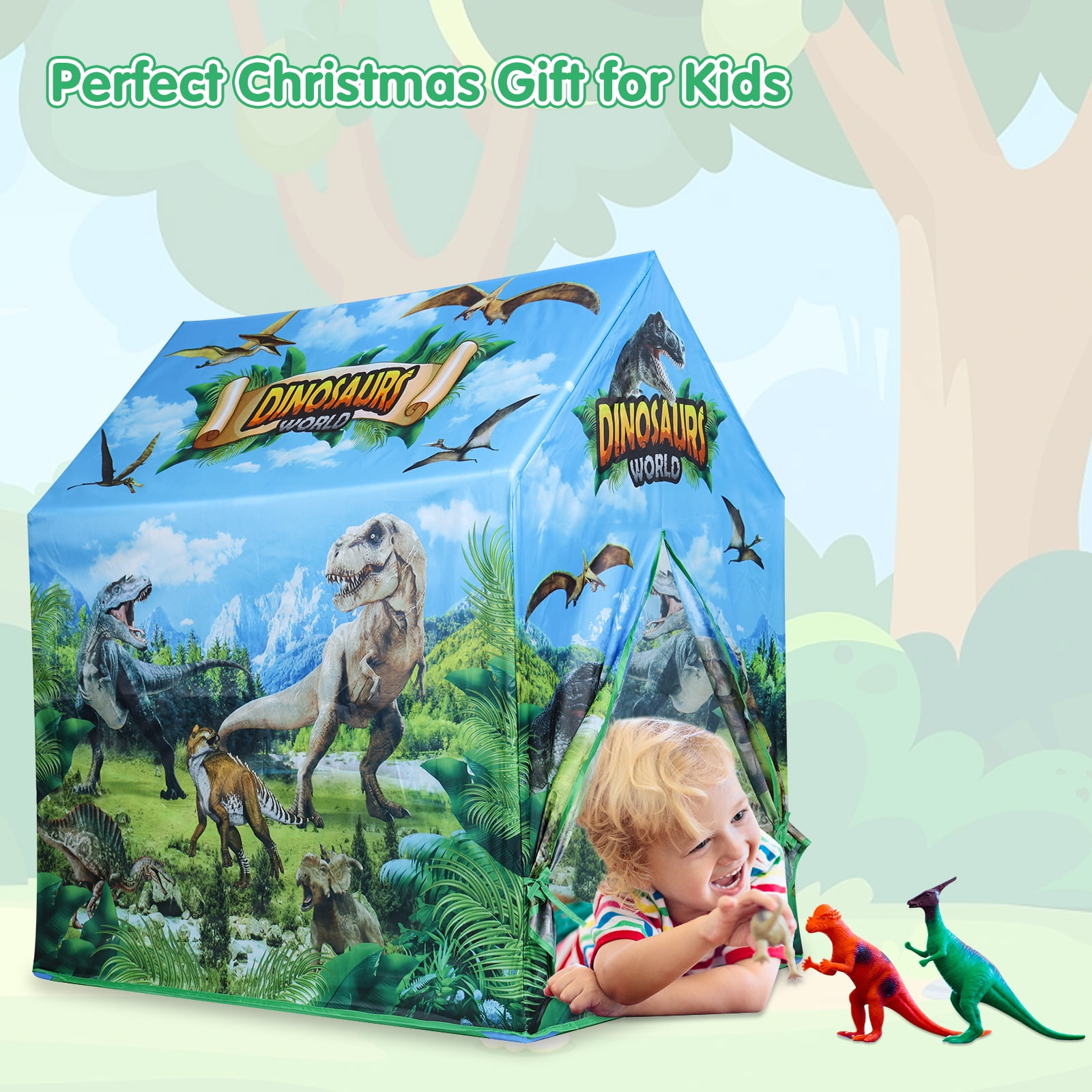 AOKESI Kids Play Tent, Dinosaur Discovery Playhouse Tent, Indoor Outdoor Dinosaur Toys Tent Pretend Playhouse Gift for 3-12 Y Girls & Boys
