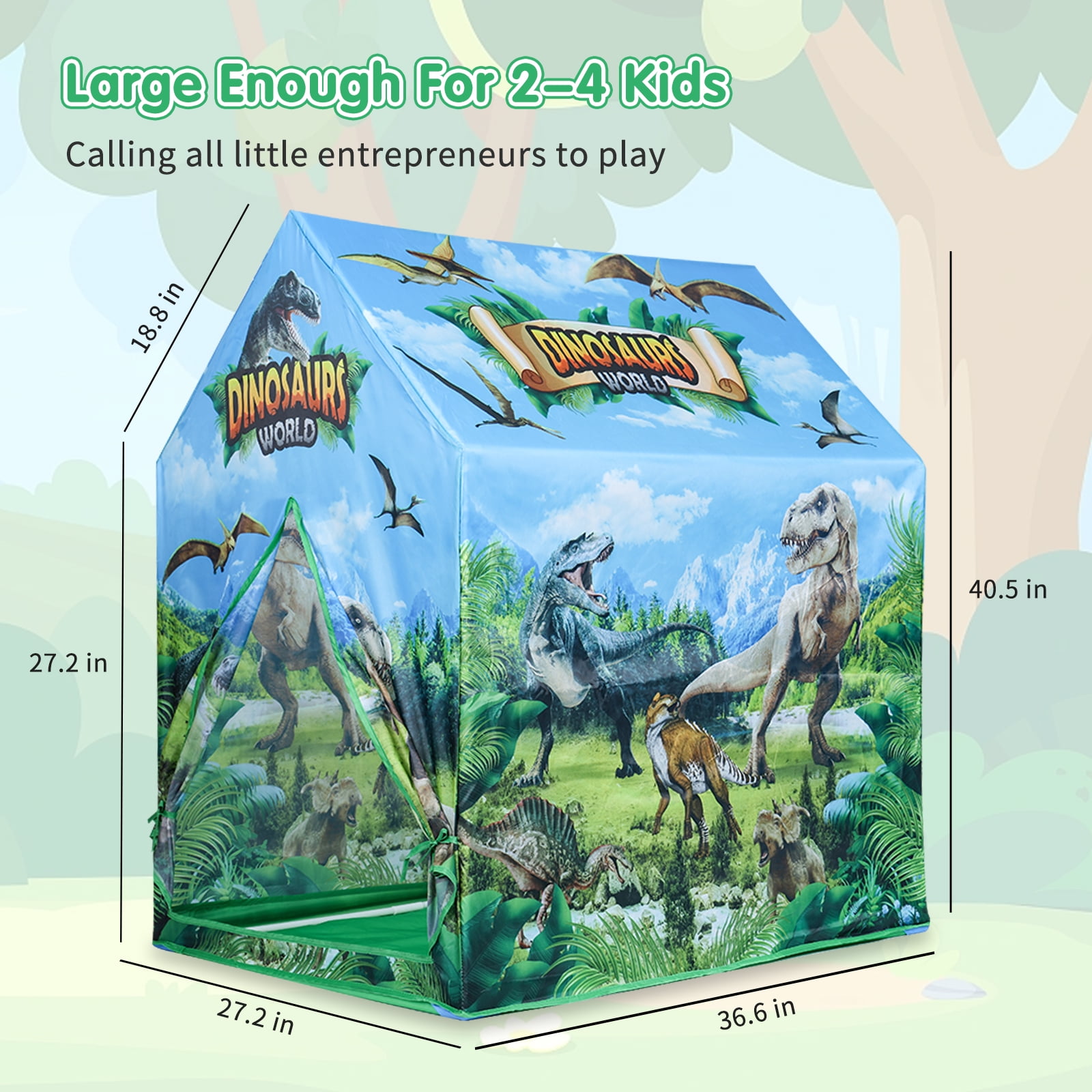 Dinosaur Discovery Kids Play Tent Let Kids Step into a Lost World: Where dinosaurs roamed the earth. Transform your kiddos bedroom into a prehistoric playground within minutes with our simple kids pop up tent. Indoor Fabric Playhouse Gift for Dino Lovers: The vibrant artwork makes this a perfect toddler tent and an unforgettable gift for any boy or girl, especially if looking for dinosaur toys for kids 3-5. Play & Learn Through Dinosaur Toys Pop Up Tent: Forget more screen time, teach your little ones about the dinosaurs they can see in this indoor tent for kids. Your Child Deserved the Best Outdoor Indoor Tents: Shaped with premium polyester that is easy to clean and reinforced roof and floor pockets, the dinosaur play tent is durable enough to withstand any epic dinosaur adventure. Perfect Indoor & Outdoor Playhouse: This toddler dinosaur tent measures 54.5×33.5x93cm, it make for the perfect space for kids to play and relax in.
