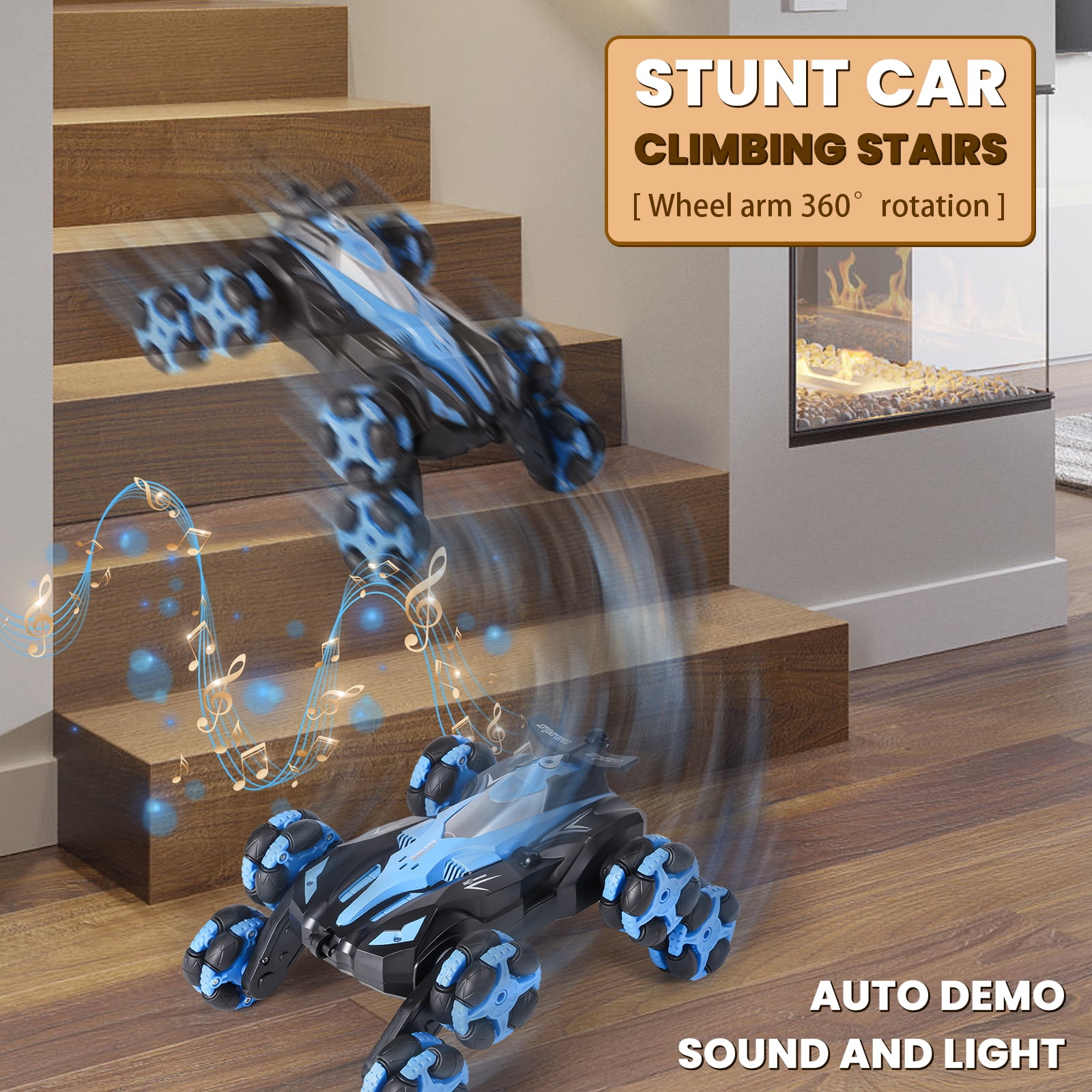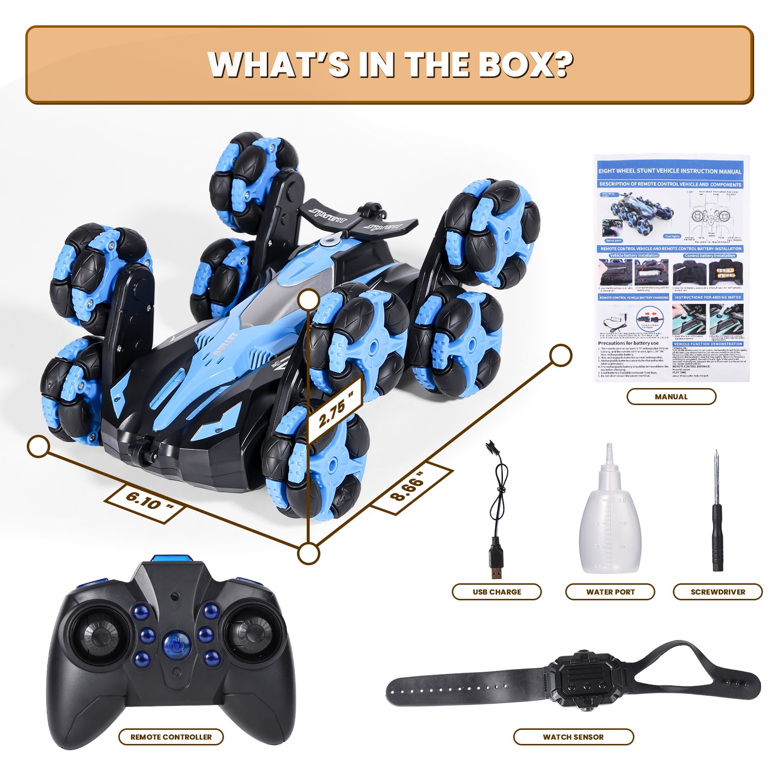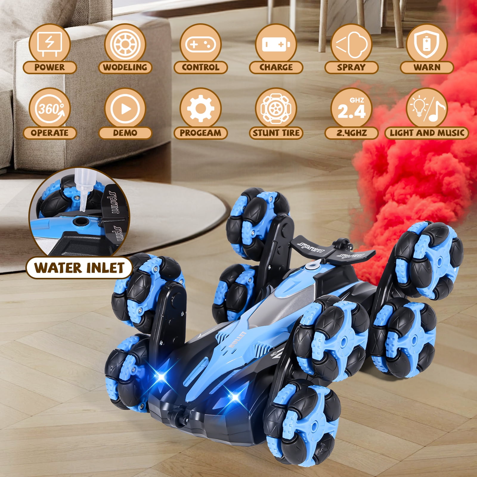 AOKESI RC Car, 2.4GHz Remote Control Drift Hand Stunt Trucks, 8 Wheels RC Off-Road Climbing Car with Spray & LED Light, 360° Rotating Gesture Sensing Stunt Car Toy Gift for Boys Girls, Blue