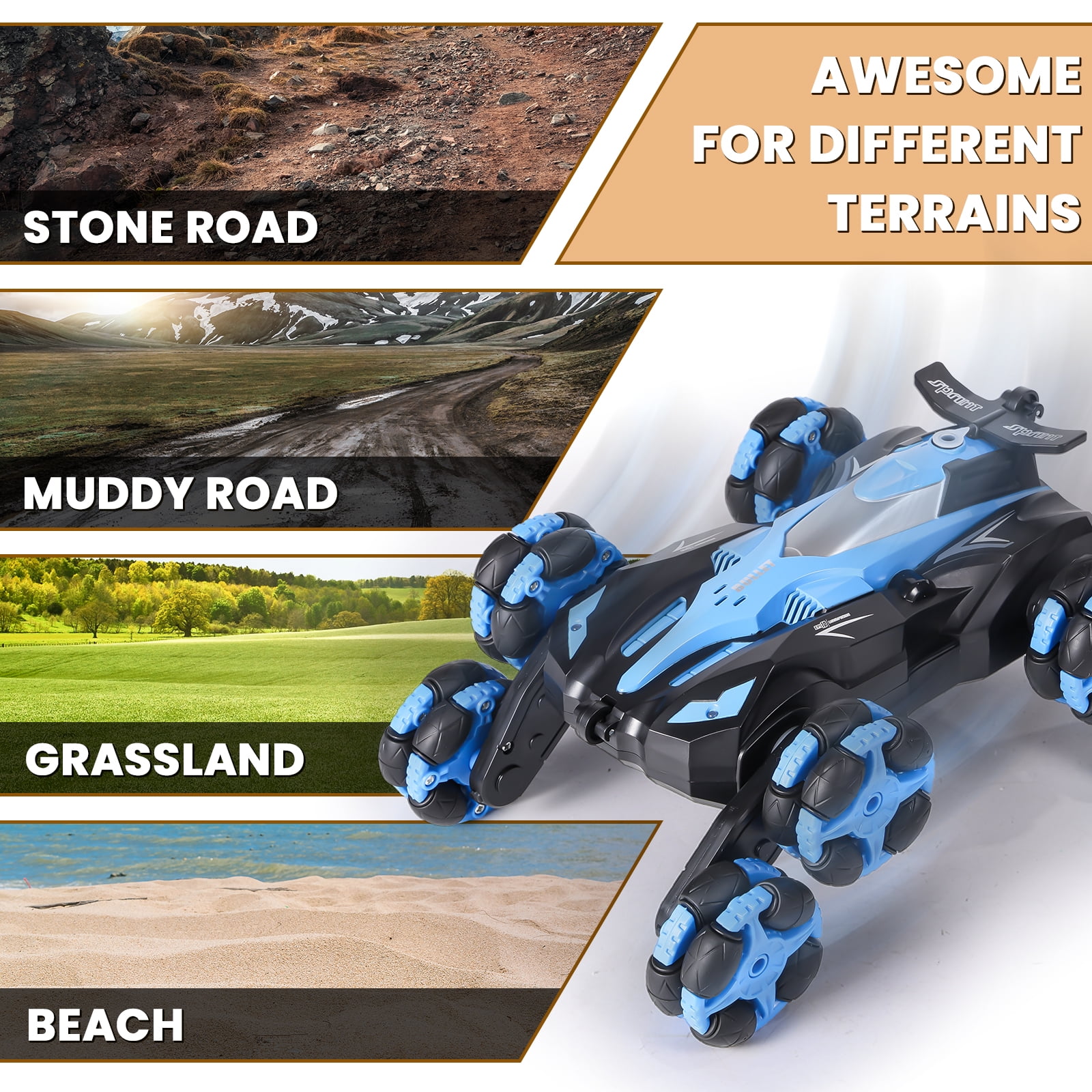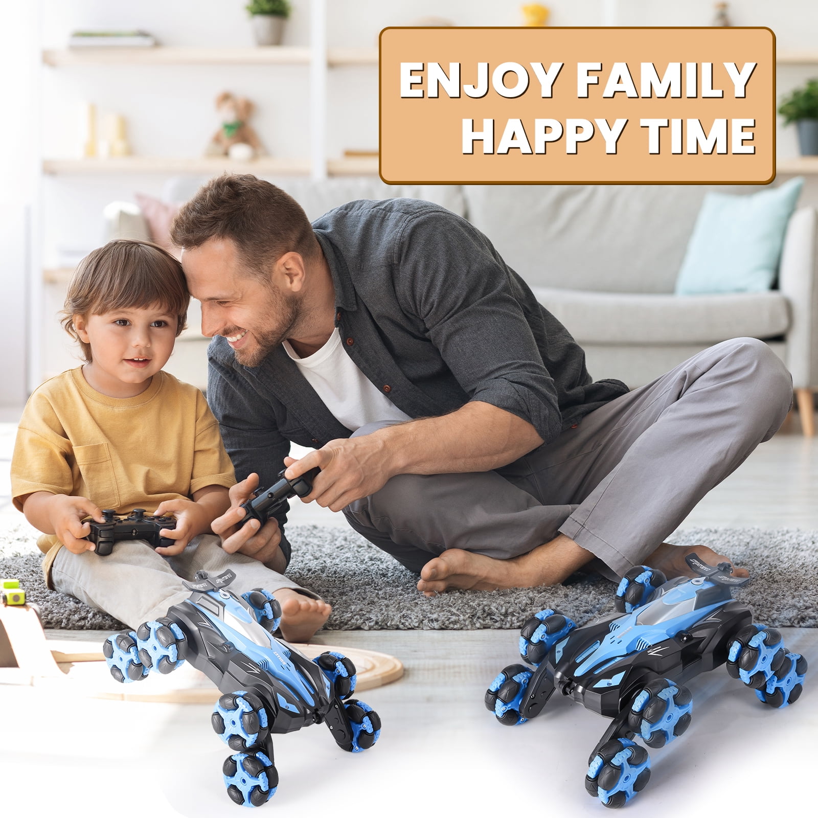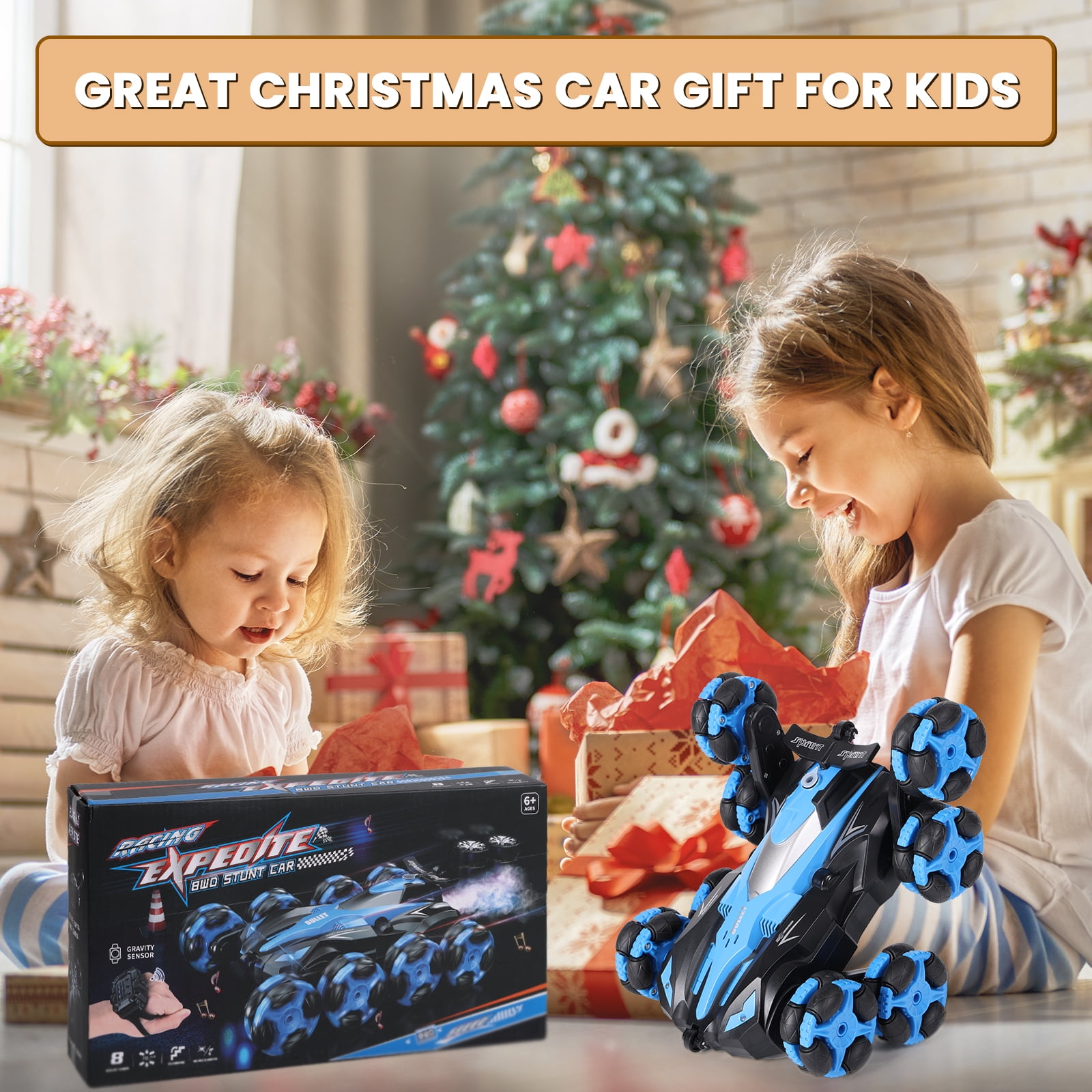 AOKESI RC Car, 2.4GHz Remote Control Drift Hand Stunt Trucks, 8 Wheels RC Off-Road Climbing Car with Spray & LED Light, 360° Rotating Gesture Sensing Stunt Car Toy Gift for Boys Girls, Blue