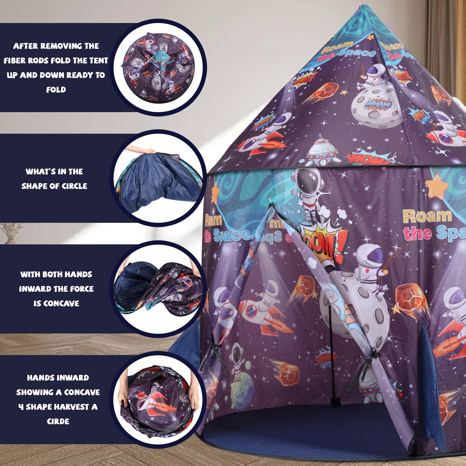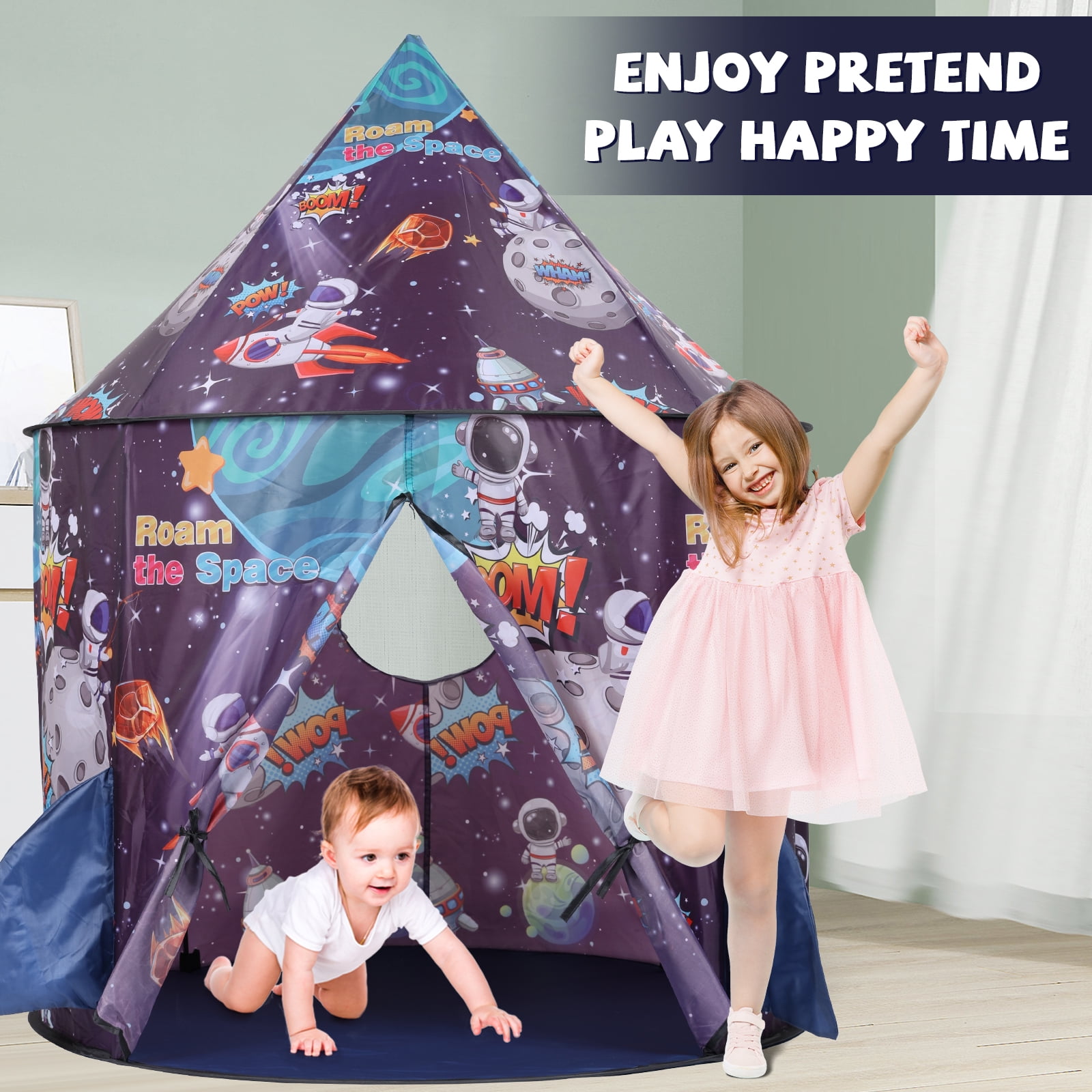 AOKESI Rocket Ship Play Tent for Kids, Astronaut Space Themed Pop Up Play Tent Imaginative Indoor Outdoor Foldable Pretend Playhouse Gift for Boy & Girl