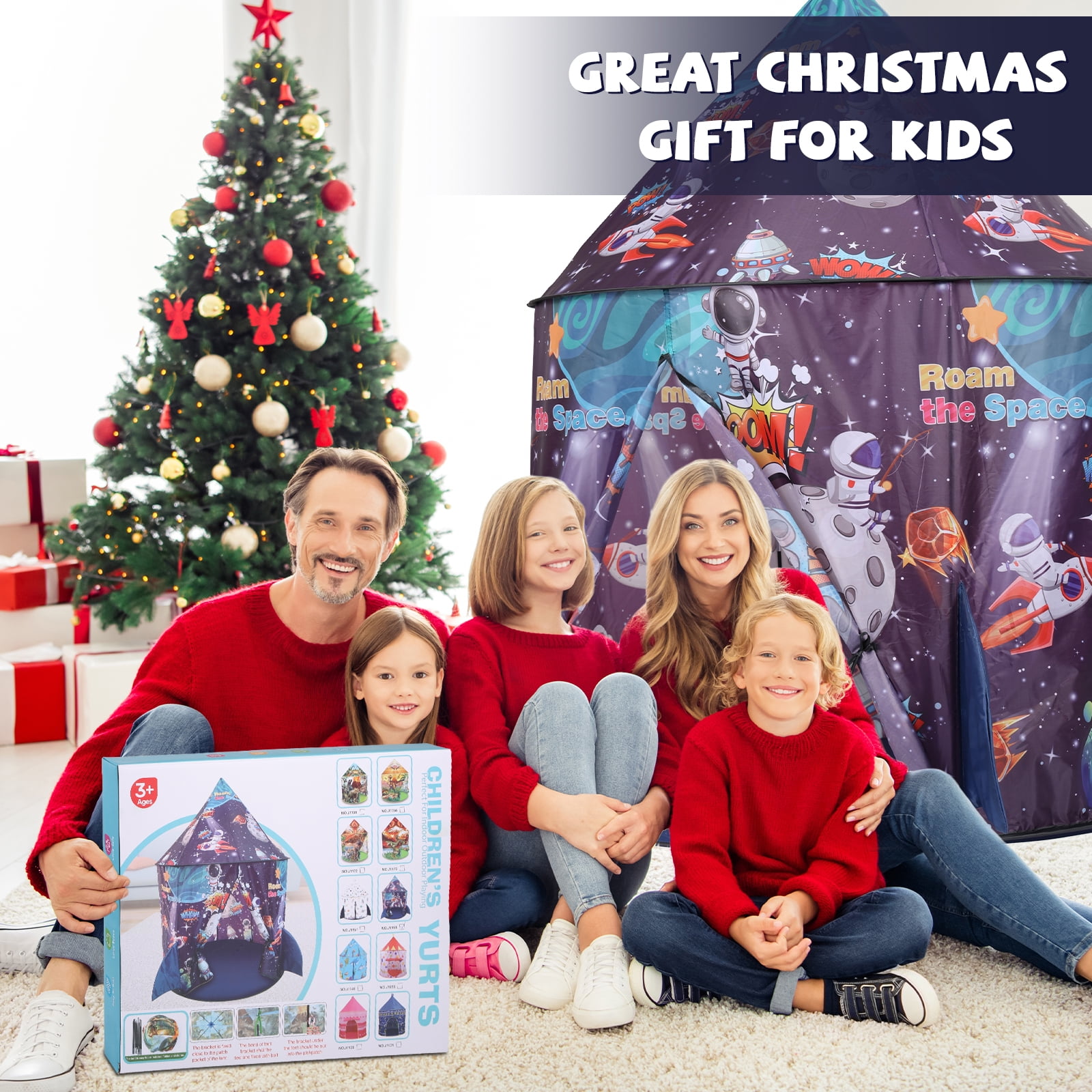 AOKESI Space Pattern Kids Play Tent for Boys, Girls and Toddlers Imaginative Toy Indoor/Outdoor Foldable Kids Playhouse-Easy to Install Ready to Soar into Space – Kids pop up tent encourages them to learn more about space exploration. Let them leap into a world of asteroids, black holes, and epic intergalactic adventures. Minutes to Set Up-Hours of Play – Use the strong Polyester to build this rocket ship play tent within minutes. When playtime is over, fold the toddler tent back up into a compact portable pack! The Ultimate Spaceship Tent – Spark their imaginations with vibrant space artwork. This rocketship indoor tent can transport them from your home — to infinity and beyond! Quality that Will Last for Years – Our toys for 3-5 year old boys playhouse is made from premium polyester, easy to clean, perfect for indoor and outdoor use, and durable enough to withstand any epic space adventure. Gift for Little Space Explorers – Everyone needs a little space just for themselves. Give your Kid a rocket play tent to play or sleep. A dream tent or add to your existing astronaut toys for 3, 4, 5, 6, 7 8 year old and up boys or girls.