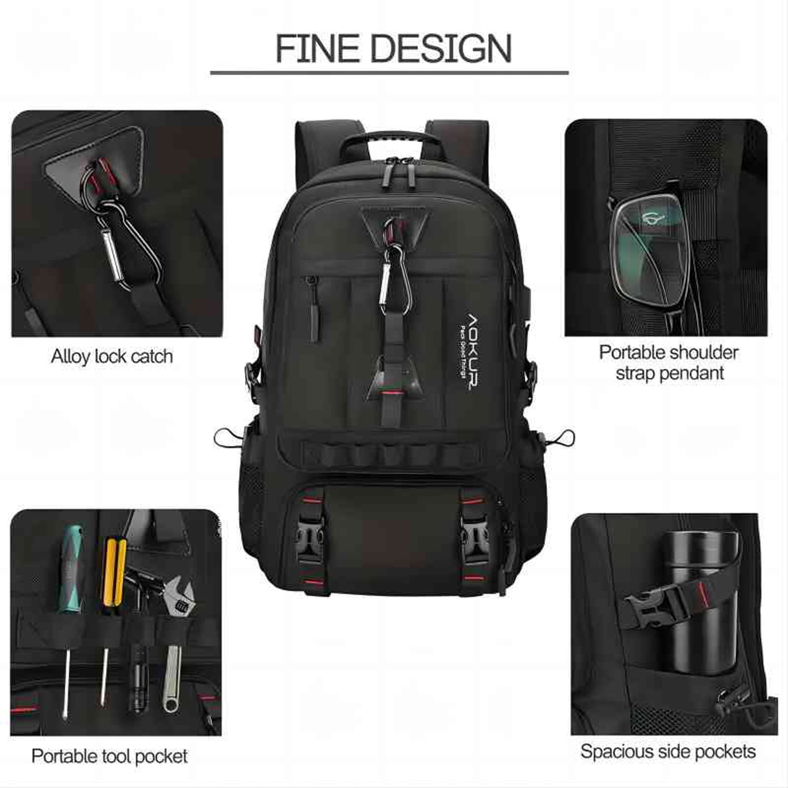 Aokur 55L Expandable Travel Backpack, Unisex 18.4″ Laptop Backpack with USB Charger Port, Extra Large Hiking Backpack with Shoes Compartment & Dry Wet Pocket Black
