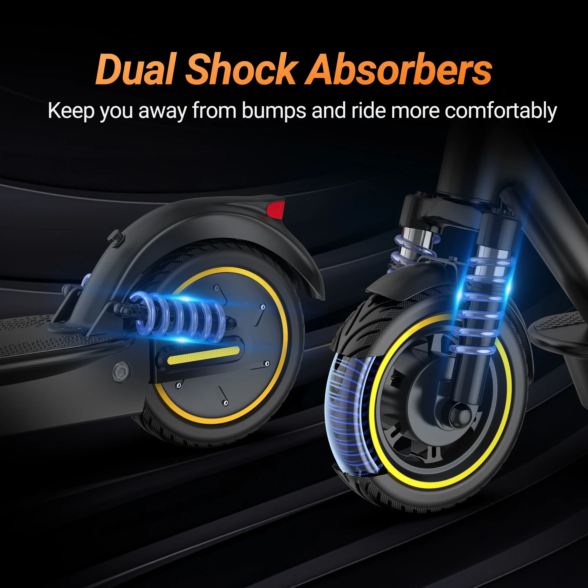 Key Features 1. 21-27 Miles Super Long Range 2. Super high speed as 20mph,3 speed level (7 mph/9.3 mph/15.5 mph) 3. Double brake, front drum and rear electric brake,sensitive and safe brake 4. Full scooter body waterproof design, waterproof rating IP50 5. Support speed limit setting from 20 to 3.7 mph 6. APP lock function on scooter 7. 3 seconds to fold ,save space,41lbs,super light,easy carry 8. Loading capacity 265 lbs,aluminum alloy forged scooter body,strong and durable scooter,500W motor,climbing range 30° 9. Metal bell design, loud ring bell, easy to operate 10. Sine wave motherboard, accelerate & brake more smoothly, safety, unique on the market,much better than other square wave motherboard model (accelerate & brake wobble, bad driving experience and dangerous) 11. App,speed/battery/mileage display,APP lock for scooter,light switch ,scooter switch off,cruise on/off ,scooter speed zero &non-zero start,automatic shut down time setting 12. Colorful LCD display to show the scooter speed/mileage/condition 13. One button,switch on/off,speed adjust,light switch on/off cruise function ,make driving smart and relax 14. Double suspension, comfortable and safe 15. Foldable, convenient for storage, does not take up much space Unisex adult electric scooter