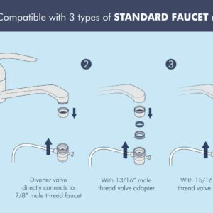 Hooksup to most STANDARD FAUCET in minutes. Just plug and drink! Lightweight,installation-free system. It’s NOT compatible with pull-out faucets, special size designer faucets and sprayer faucets. Highest grade 4-Stage ultra-pure system with food-grade calcium from trusted source. Enjoy ultra-pure drinking water with added calcium minerals for improved alkalinity and great taste. Designed aluminum case for better looking, 90 GPD portable system built with high capacity filters for reliable, long lasting performance. Perfect for apartments, condos, motor homes, retirement homes, seniors, students & travelers.