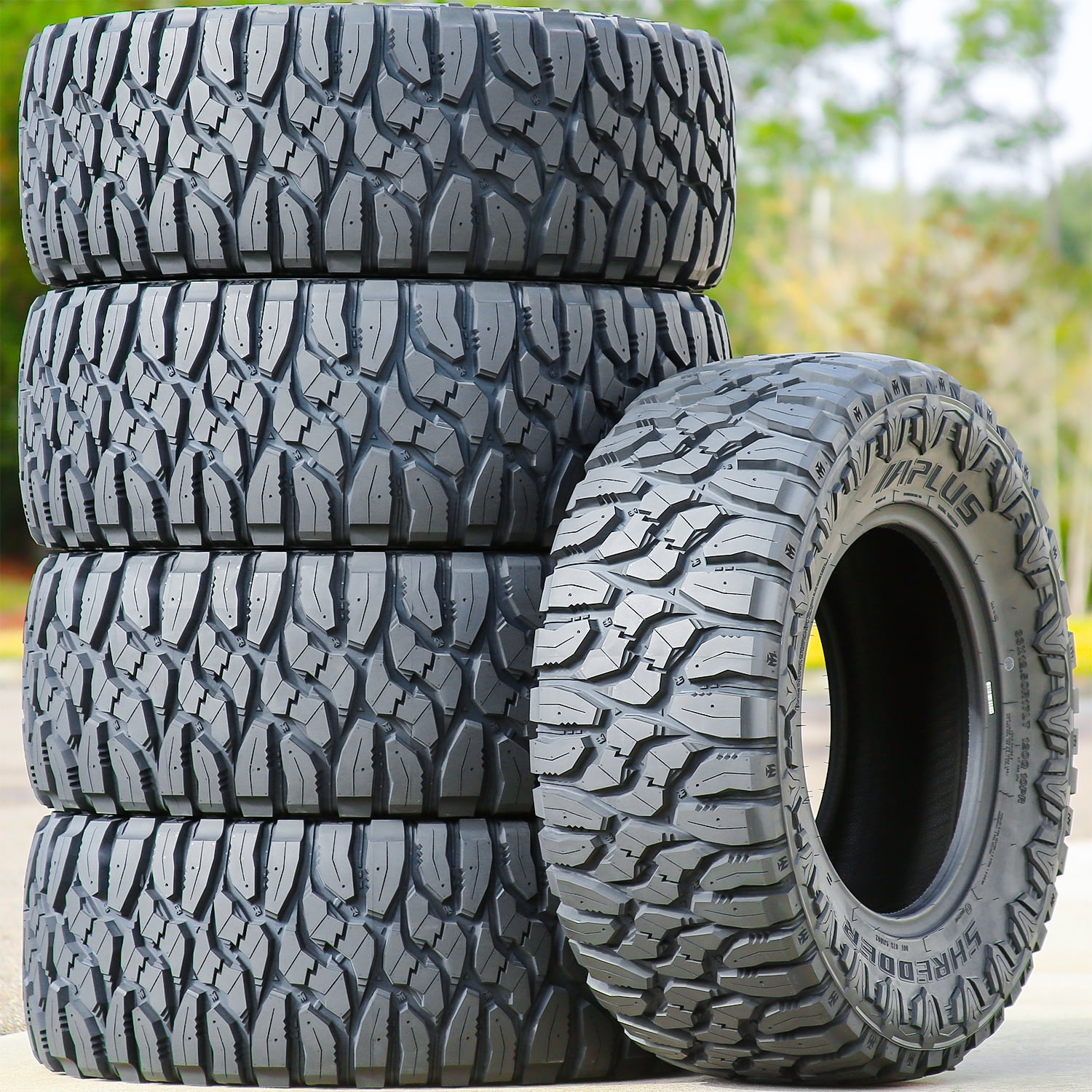 Aplus Shredder MT OVERVIEW The Aplus Shredder MT is a mud terrain, all season tire made for light trucks. The reinforced internal structure and the durable rubber compound upgrade the model’s load durability and damage resistance. The strengthened structure keeps the ideal tire shape under load and driving pressure. As the tire does not deform under such pressure, the tire is able to securely carry and withstand heavy loads with ease. This results in the tire’s better load capacity. The stronger structure also works together with the damage-resistant compound and the self-cleaning tread design to combat external damage. They protect the tire from punctures, cuts, and impact damage, which also prevents tread damage from shortening the service life. In this manner, the tire ensures a damage-free driving experience. Exceptional traction on muddy terrains is provided. Better performance is offered with off-road traction. These blocks and the high void ratio work together in order to increase soft, loose, and uneven terrain grip. This guarantees its exceptional forward motion on various terrains. The tread’s self-cleaning ability manages to improve its stone retention prevention. It also keeps the footprint clean of mud and snow, optimizing its surface contact on various terrains. The tire promotes great all weather traction. The tread design and the all season compound boost dry, wet, and winter-weather grip on the road surface. The tread’s siping and notch placement firmly grips the road surface with extra biting edges, while the compound keeps the rubber flexible in versatile temperatures. The groove pattern helps to prevent hydroplaning, by eliminating water and slush from the footprint. This significantly upgrades the model’s wet-weather driving safety levels. The Aplus Shredder MT ensures better controllability with the ideal tread design. Excellent and consistent terrain contact is ensured with the aggressive tread design. This enables the tire to maintain surface contact at all times, boosting steering responsiveness and driving stability. This provides great steering responses and accuracy, as well as better structural stability. Cornering is upgraded with the shoulder block placement, by generating additional biting edges. The intended purpose of Mud Terrain tire types is off-road use. They are not designed for regular highway driving. Manufacturers recommend changing tires every 10 years. As long as tires are properly stored before they are sold, the year of their manufacture will not shorten their service life.