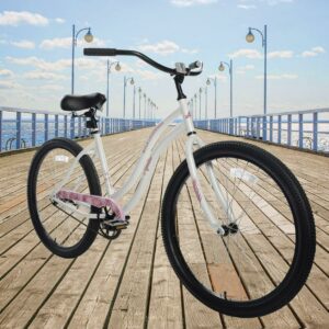 – Frame/Fork: Aluminum comfortable cruiser frame with a steel fork
