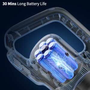 Long-time Working: This stick vacuum cleaner uses a 6-cell top battery can offer up to 30mins. Cordless vacuum can full charge in 4 hours and one charge is equivalent to twice the runtime time of other vacuum.