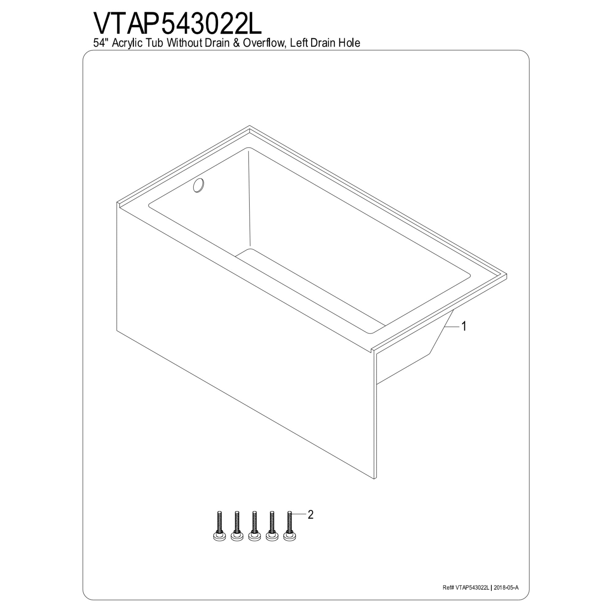 Fabricated from High Quality Acrylic Material Freestanding Installation Overall Dimension: (L)54″ X (W)30″ X (D)21-5/8″ Water Depth is 14-3/8″ to Overflow Designed for Long-Lasting Durability Easy-to-Clean