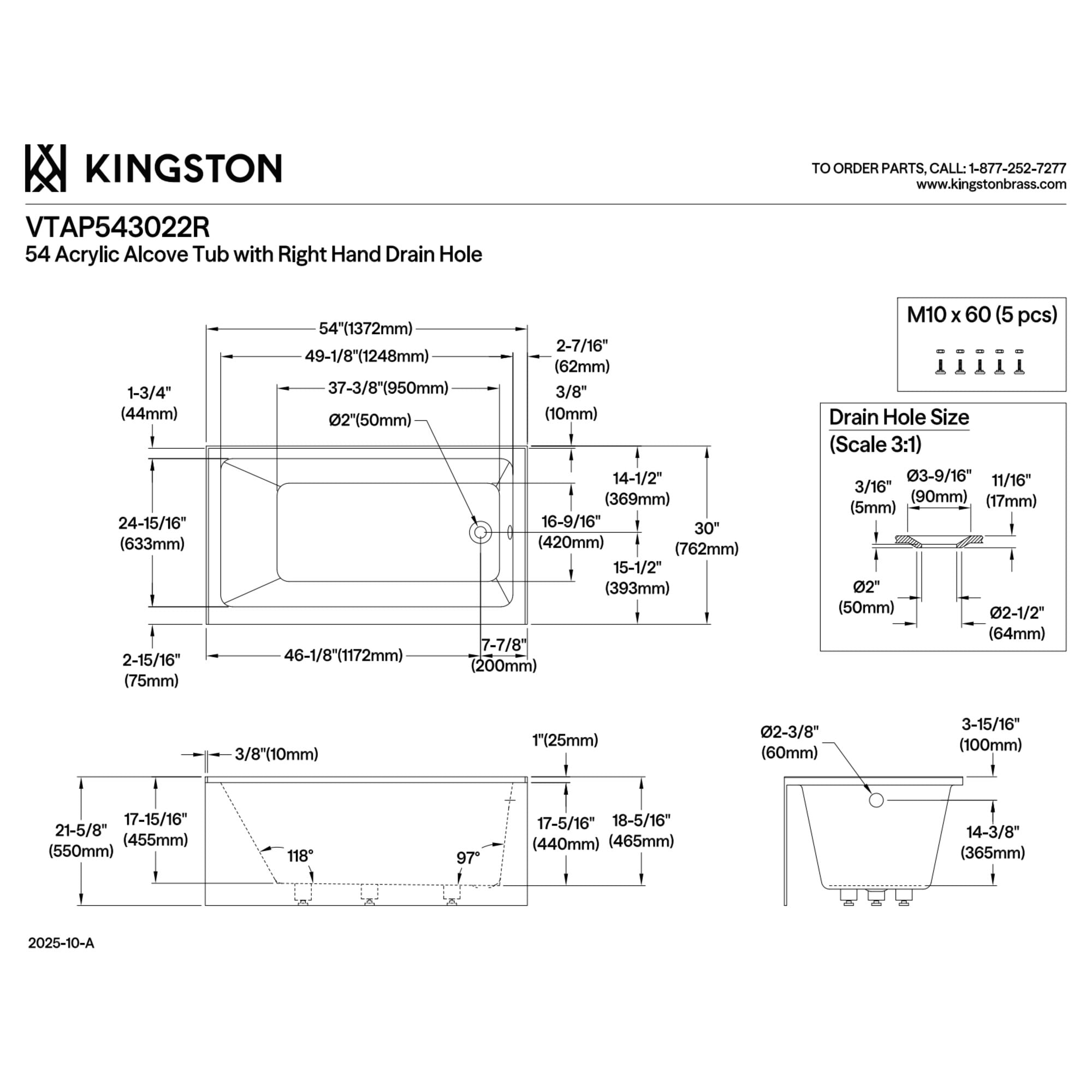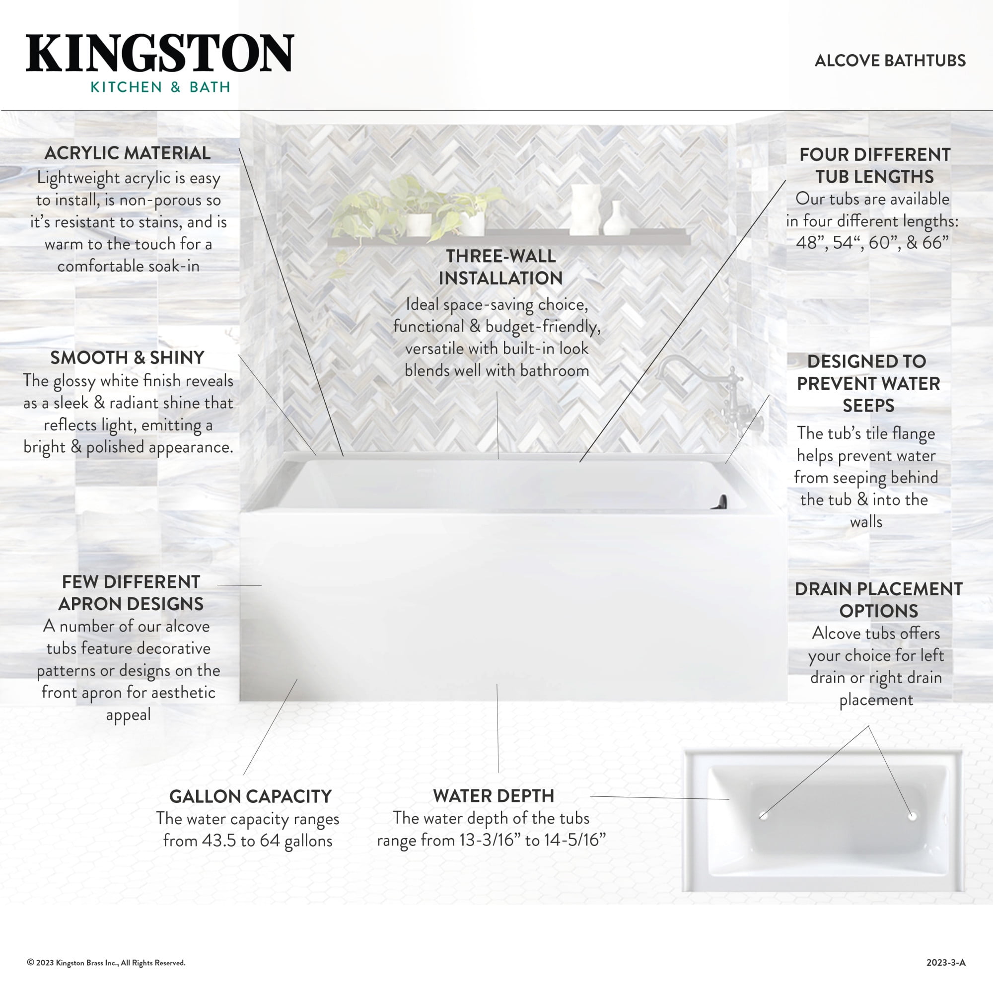 Create lasting memories of bubble baths with your children or relax from the stresses of the day with a top-notch alcove tub by Kingston Brass. Extremely user-friendly with effortless installation and simplistic construction, the alcove tub is the perfect addition to your home if you are looking for pristine performance and polished refinery. The Aqua Eden 54-Inch Acrylic Alcove Tub with Right Hand Drain Hole will wholly beautify your home for years to come thanks to its durable and easily repairable acrylic construction.