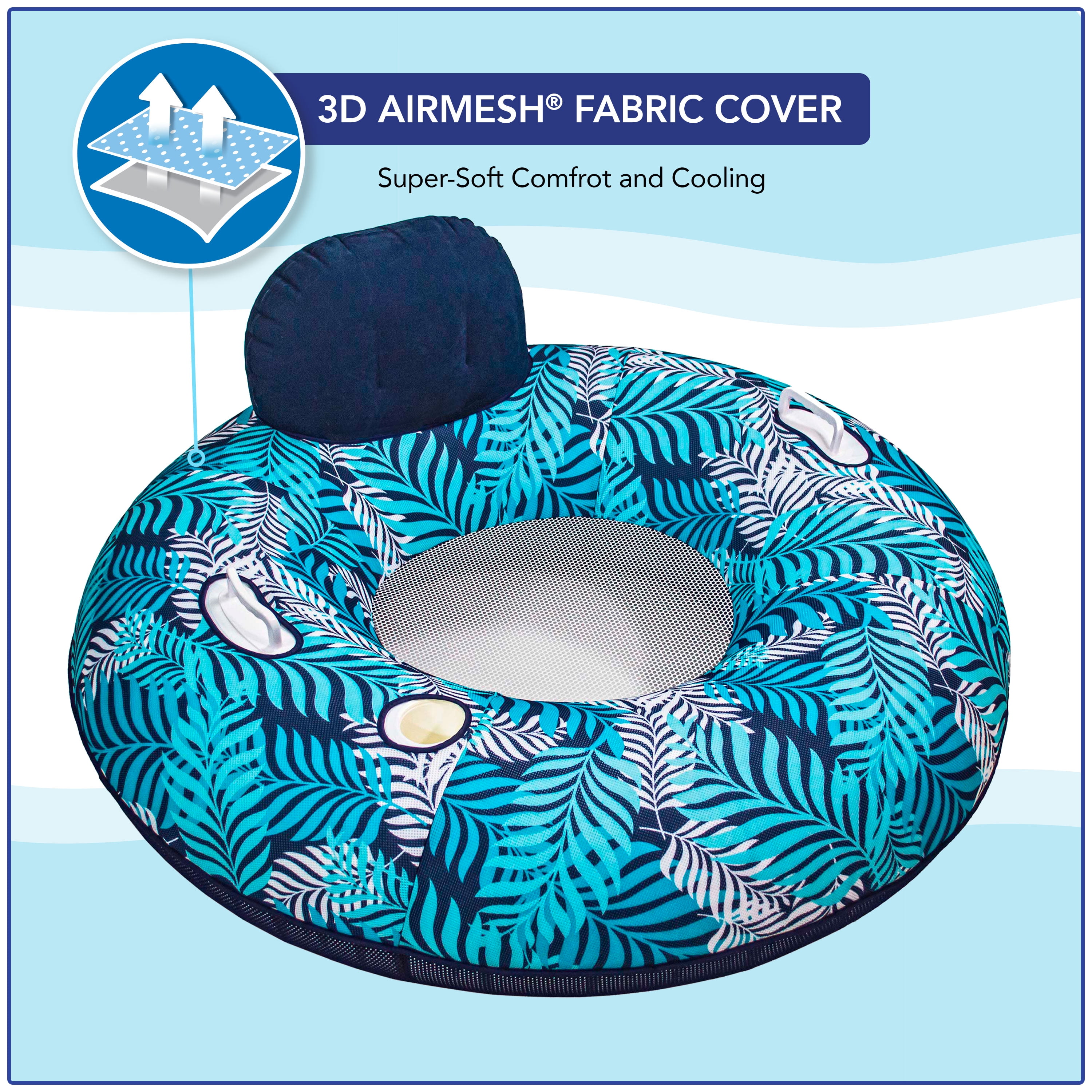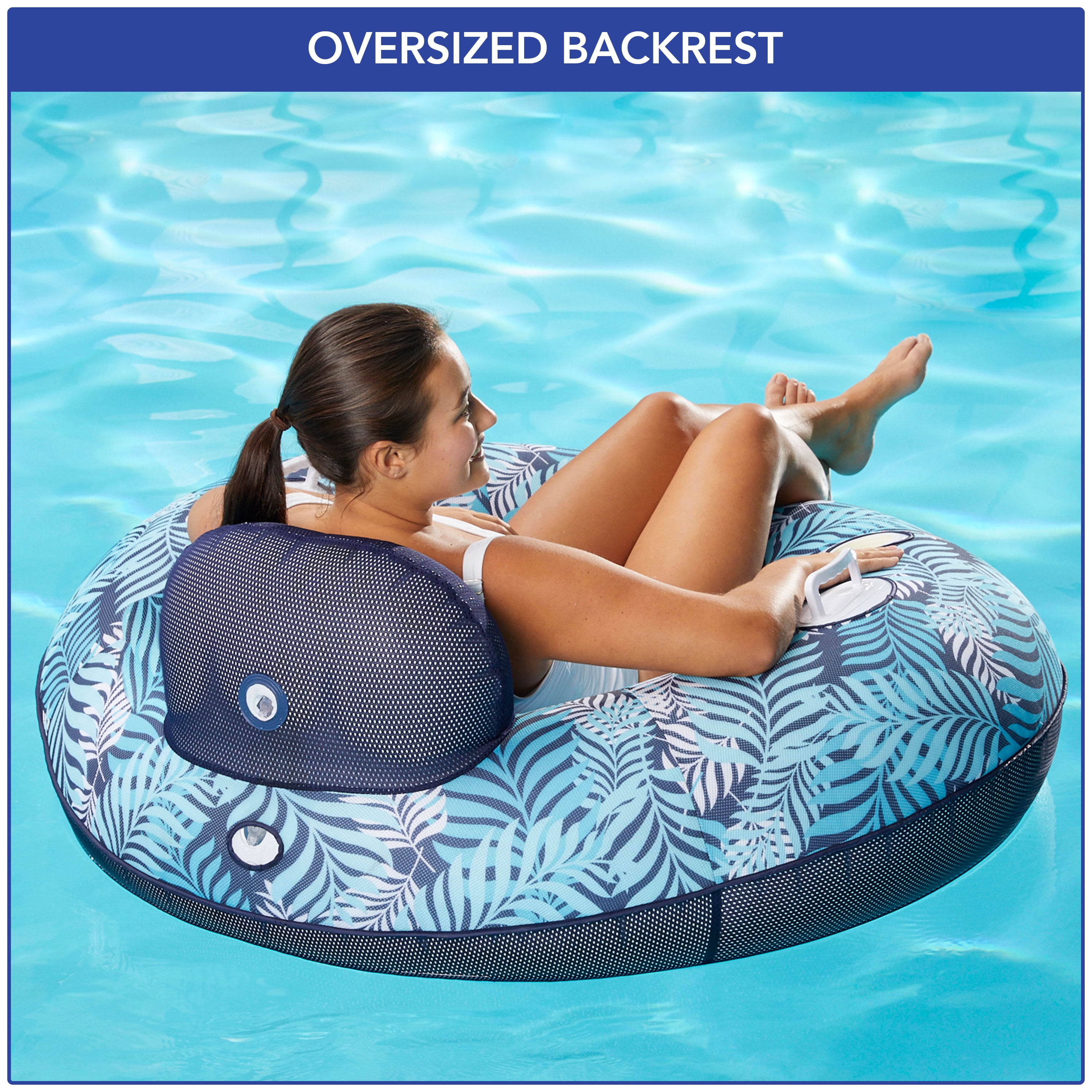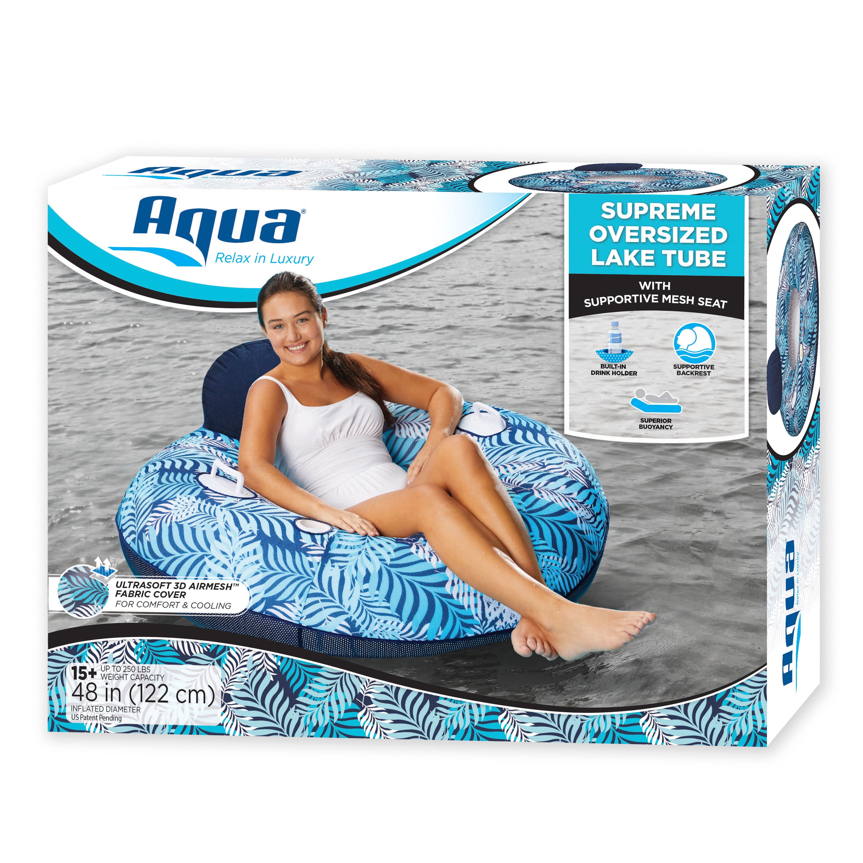 Oversized tube for superior buoyancy Aqua Leisure Oversized Cooling Pool Float and Lake Tube, Unisex,15 years and up, Blue Cool Weave® fabric mesh cover Comfortable ergonomic backrest Supportive mesh seating area Built-in drink holder Boarding handles for convenience Quick-Connect buckle system for multi-float connectivity Easy inflate / deflate with the Duolock™ Valve System Size: 48″ W (122 cm) Weight Capacity 250 lbs. Recommended ages: 15 and up
