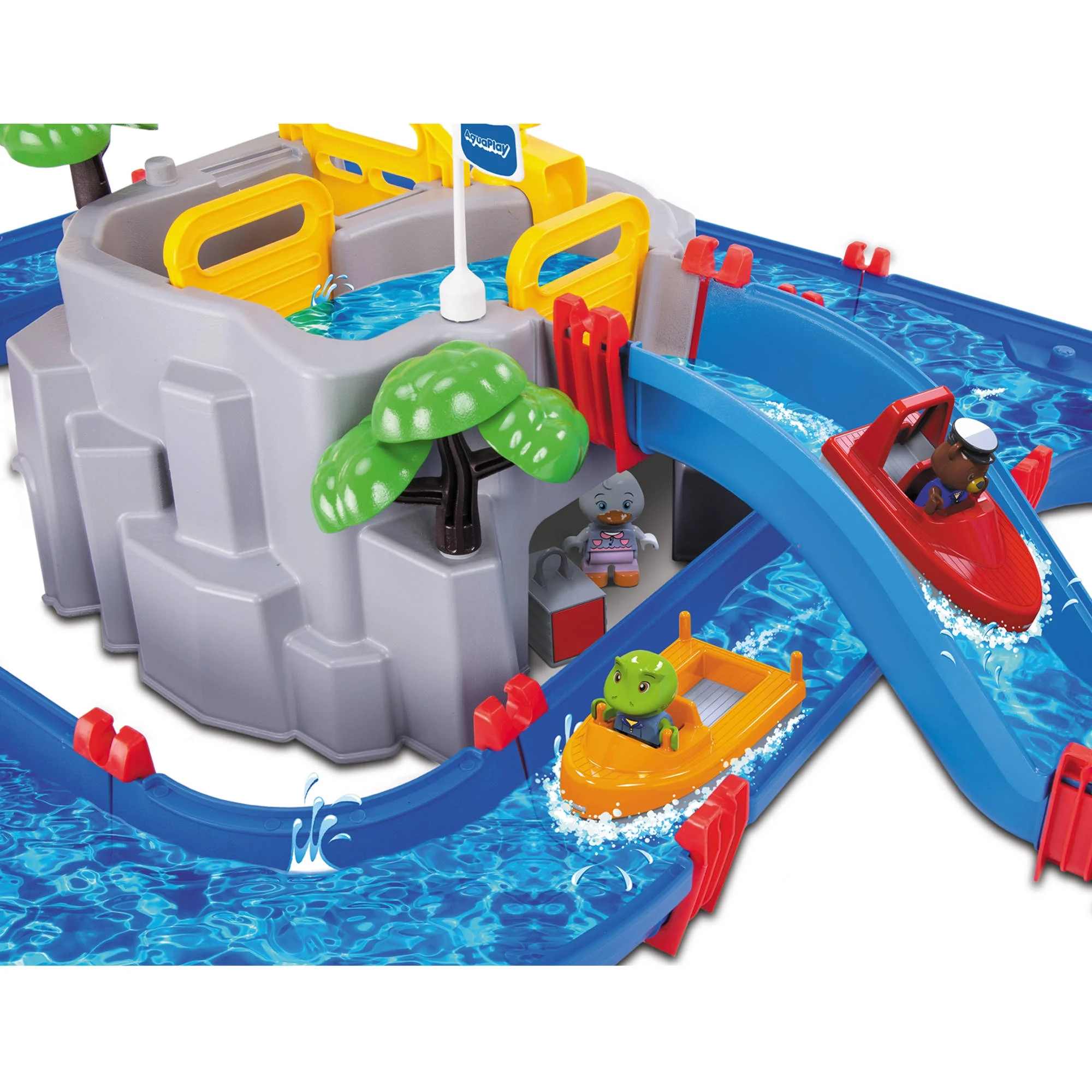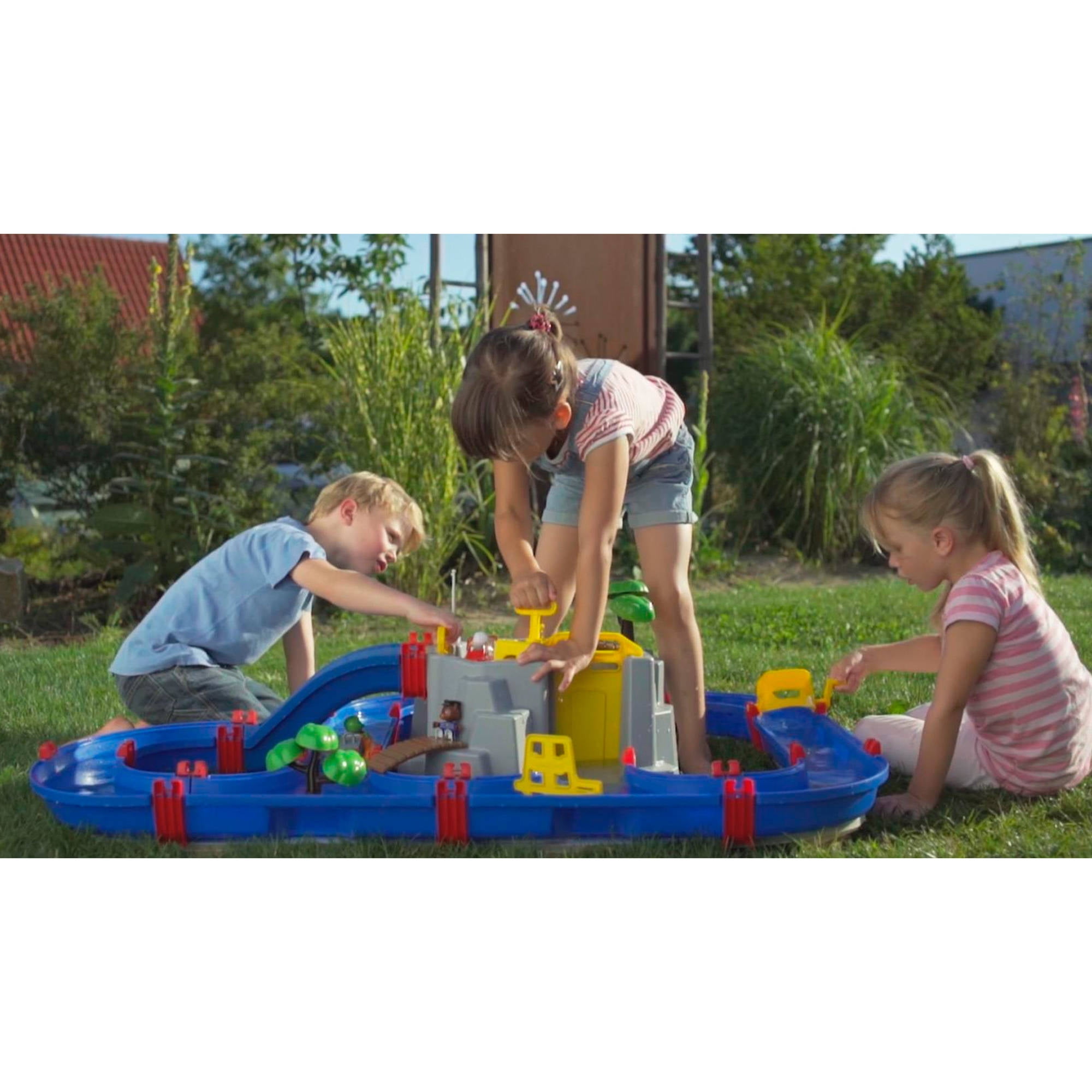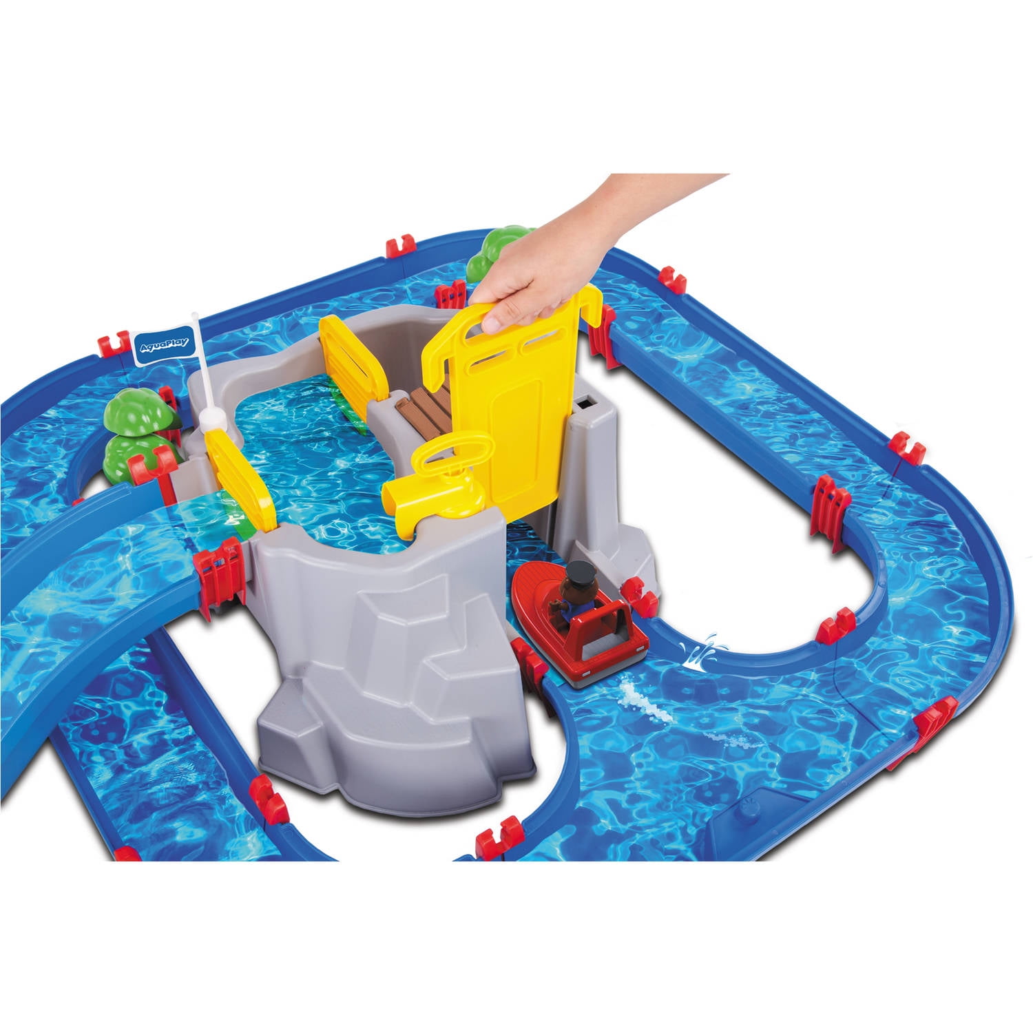 AquaPlay Mountain Lake Water Playset Age Range: 3 years and up Includes 44 pieces Approximate dimensions are 49″ x 34″ x 13″ Warning: Choking Hazard – Small parts Not for children under 3 years