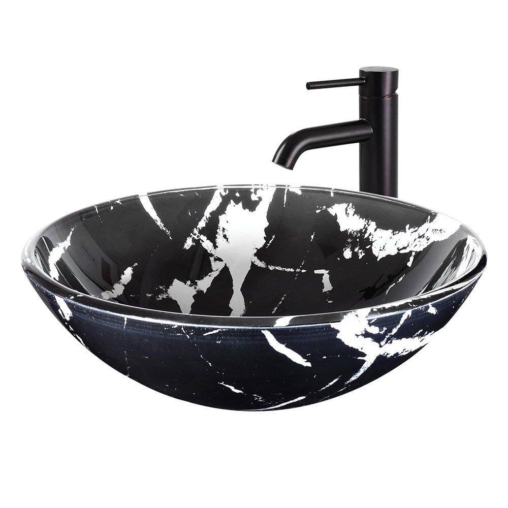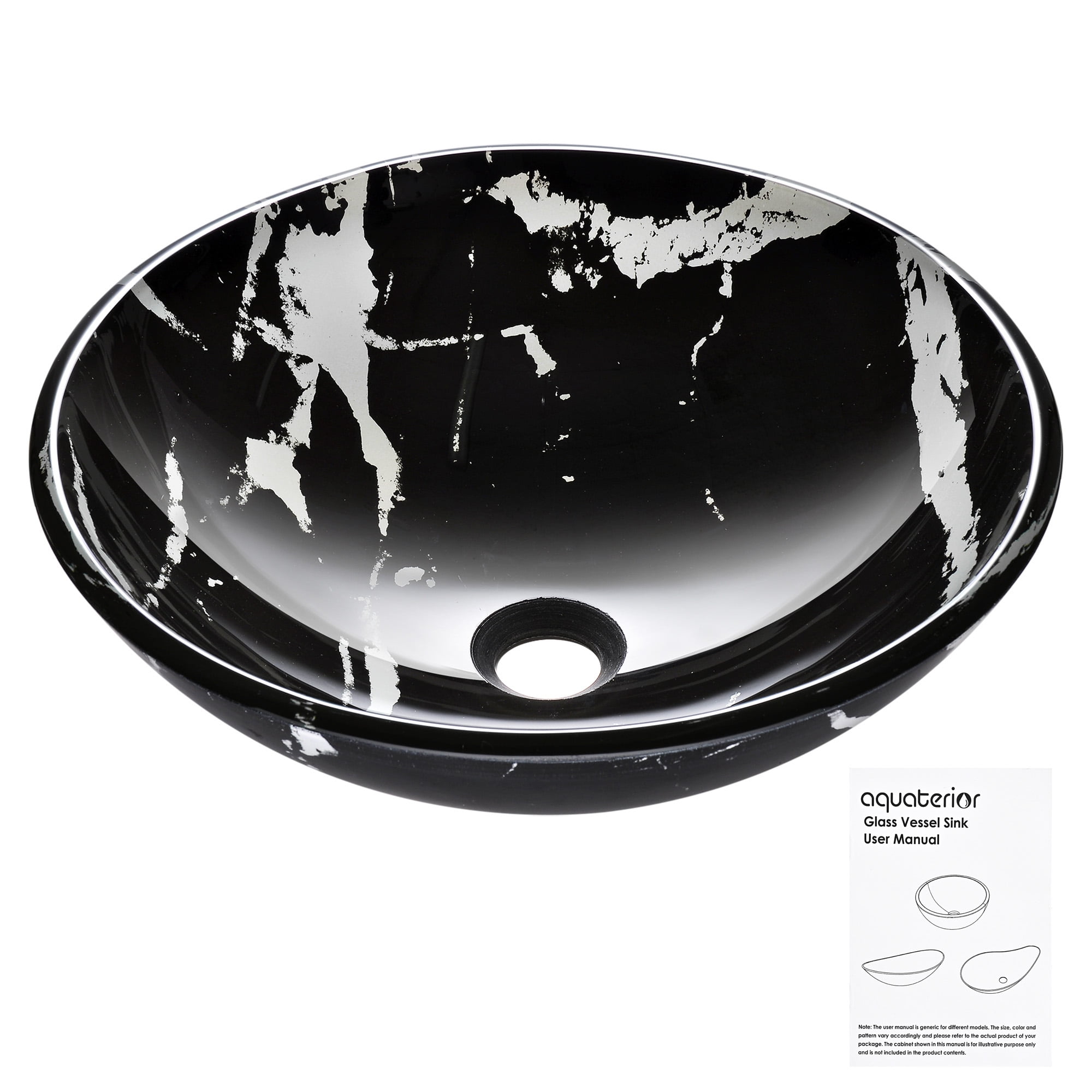 Aquaterior Tempered Glass Round Vessel Sink Artistic Marbling Pattern Above Counter Bathroom Lavatory Vanity Bowl Basin