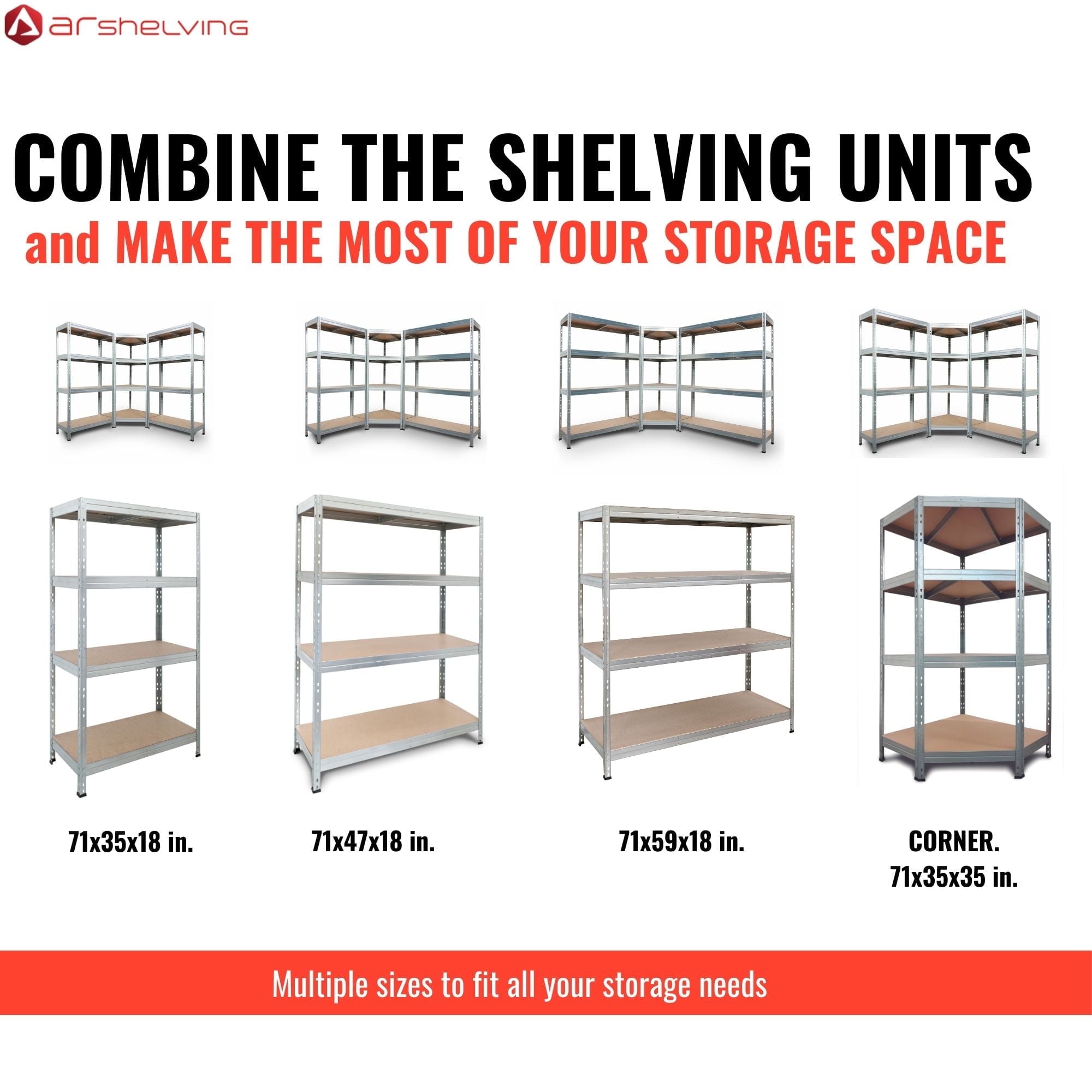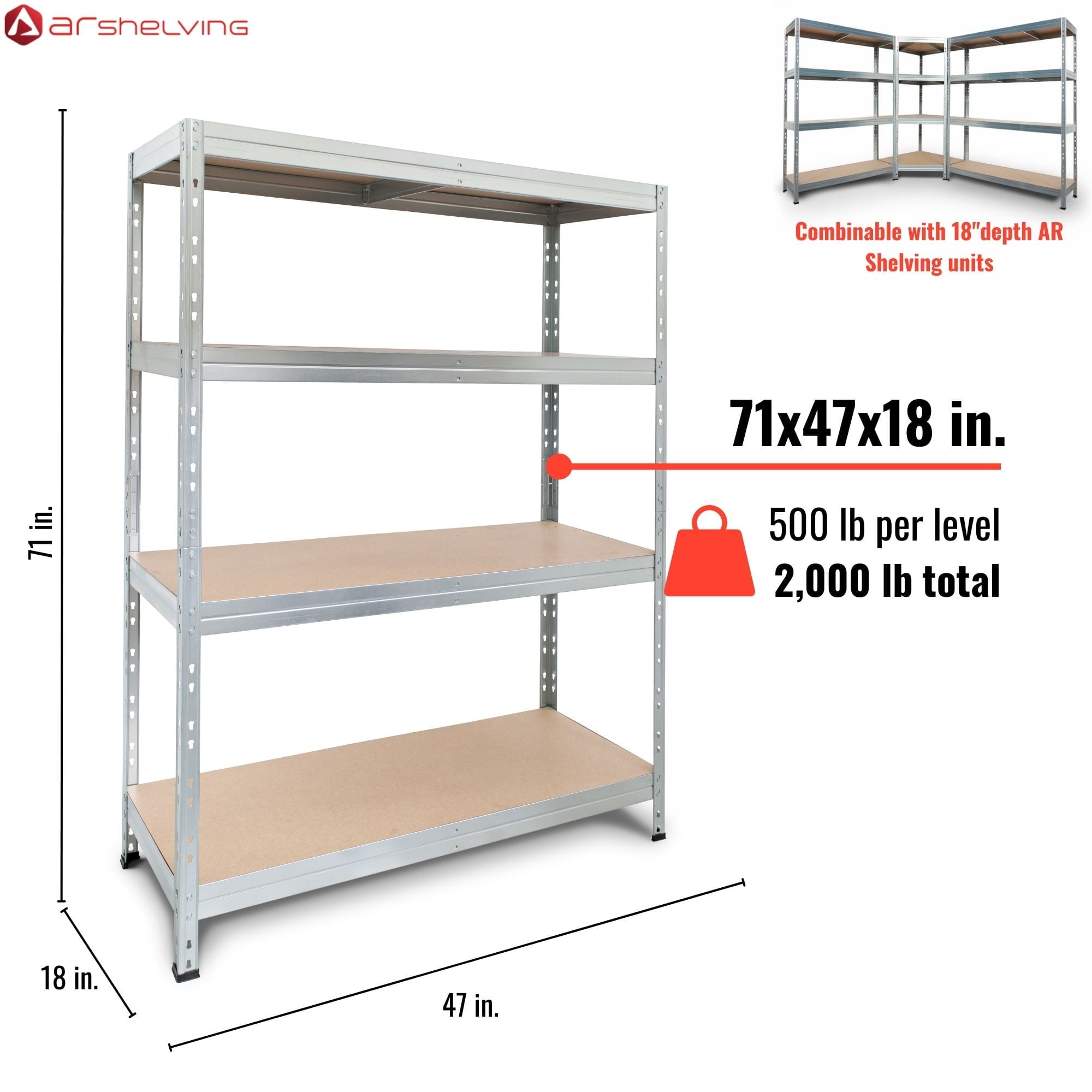 AR Shelving Versatile CUSTOMIZABLE Storage Collection for Garage, Home and Office 47″x71″x18″ 4-Tier Metal Shelf 2000 lb Galvanized Finish