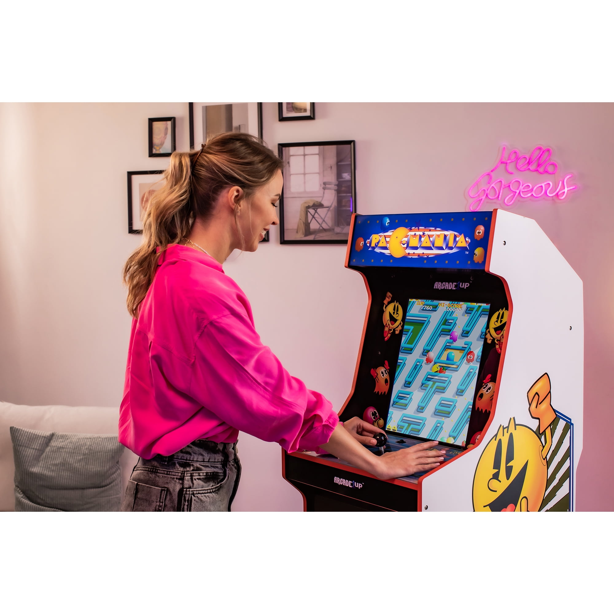 For the first time ever in a BANDAI NAMCO Entertainment Inc. Legacy home arcade game machine, you’ve got WiFi leaderboards! With no subscription required, see how your high scores measure up to other retrogamers with this Arcade1Up BANDAI NAMCO Entertainment Legacy Arcade Game PAC-MANIATM Edition. Bringing you authentic (and yes, way nostalgic!) arcade experiences in an easily assembled design, Arcade1Up game machines are must-haves for your family game room, fan cave, or a welcome distraction in the office. They play great, look great, and are instant conversation pieces. Originally founded under the name Nakamura Seisakusho in 1955, the company that would become BANDAI NAMCO Entertainment Inc. was initially in the coin-operated amusement ride business. Entering the video game Hope you’ve got a big arcade gamin’ appetite, because the Arcade1Up BANDAI NAMCO Entertainment Legacy Arcade Game PAC-MANIA Edition includes a power packed line up of 14 games, in this gorgeous cabinet that includes a matching riser and light-up marquee. Whoa and what a game list this is…FOURTEEN titles! Start off with the marquee game PAC-MANIA, then (ready for this?) PAC-MAN, PAC and PAL, SUPER PAC-MAN, PAC-MAN PLUS, PAC-LAND, GALAGA, GALAXIAN, GALAGA ’88, MAPPY, DIG DUG, DIG DUG II, ROMPERS, and ROLLING THUNDER. ALL included. Switch up to any included game at will, with the easy to navigate on-screen menus. Iconic arcade games. Pop culture imagery that has stood the test of time. Nostalgia that transcends generations. We call this the “Legacy Edition” for a reason…make that many reasons!