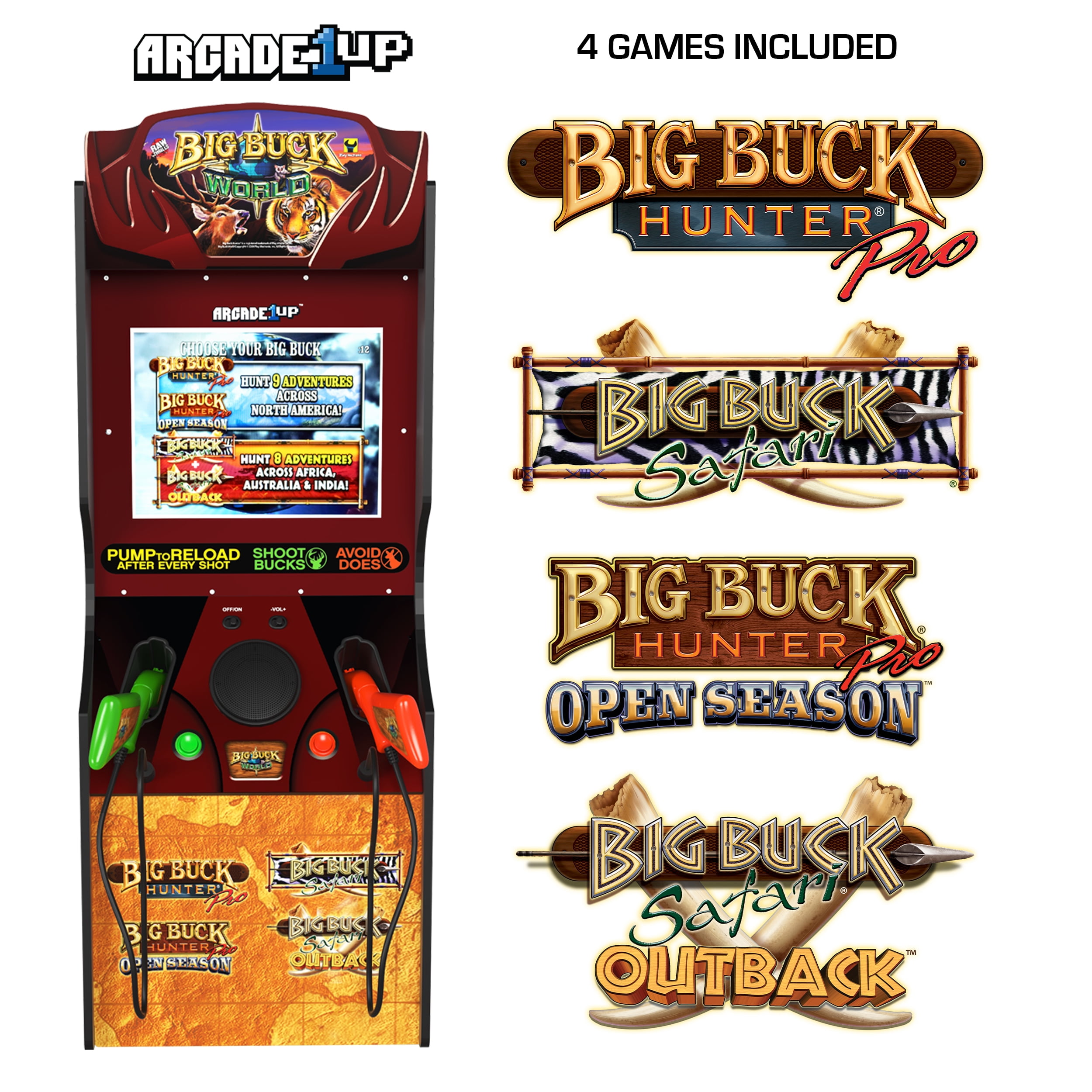 Gather your friends and family for head-to-head competition or team up for cooperative play, as the Big Buck World™ Classic Arcade Machine supports local play up to four players.