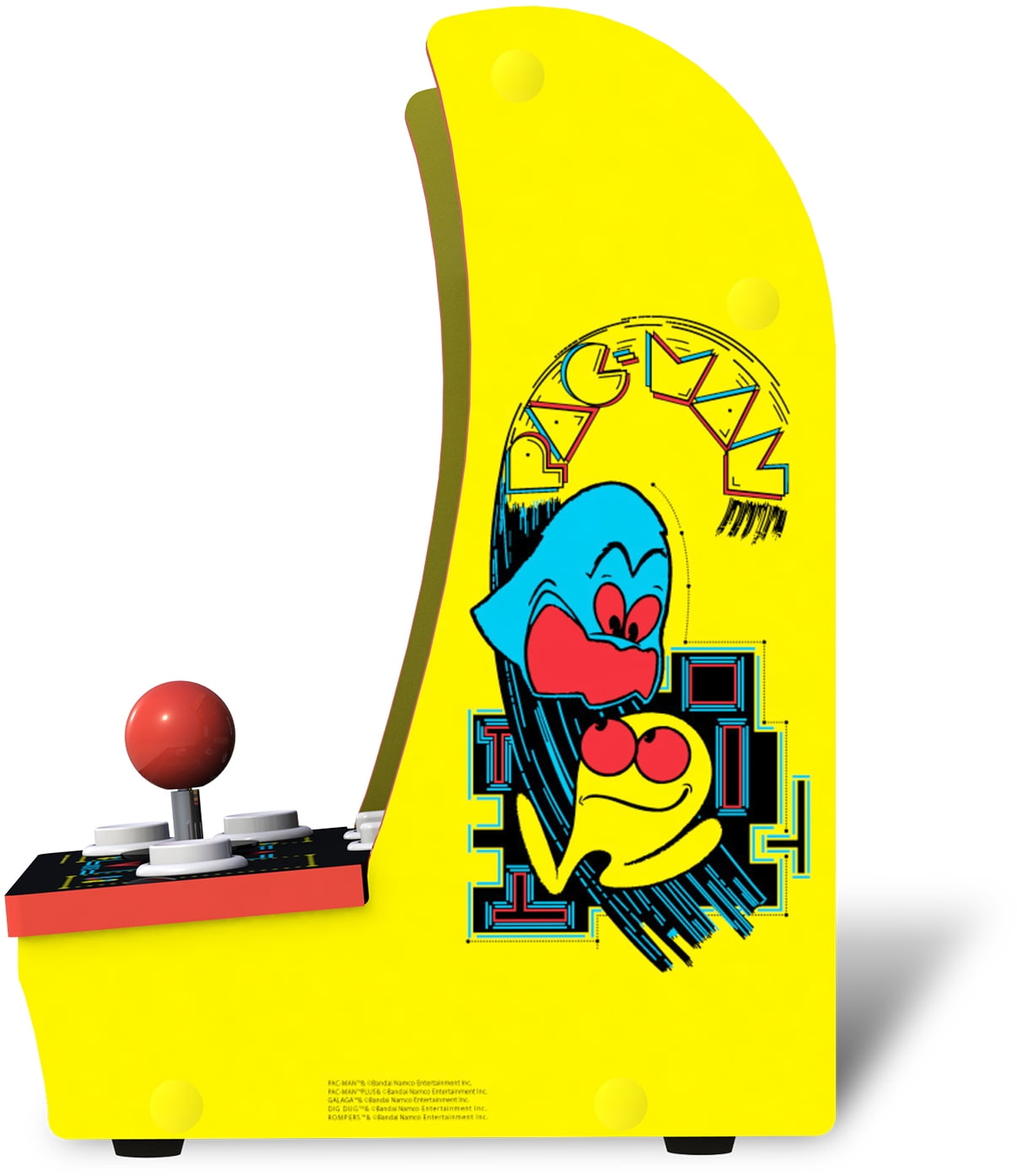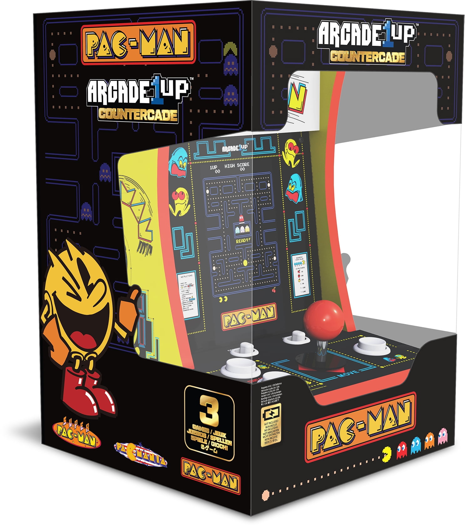 Revolutionize your gaming experience with the Arcade1Up PAC-MAN Countercade! Prepare to be blown away by the perfect fusion of nostalgia and innovation, all in one compact power house. Featuring a dazzling 7″ LCD monitor and full-size real-feel arcade controls, this isn’t just gaming–it’s a journey back in time with a modern twist. And with the convenience of4 “AA” batteries (not included), Micro-USB, or AC power supply plus a built-in handle for on-the-go fun, the excitement never has to stop. But that’s not all–dive into the immersive world of classic BANDAI NAMCO Entertainment Inc. games, with 3 legendary titles PAC-MAN, SUPER PAC-MAN, and PAC-MANIA included. It’s an arcade paradise right at your fingertips, ready to transport you to the golden age of gaming. Don’t miss your chance to own the ultimate gaming treasure. Elevate your gaming setup with the Arcade1Up PAC-MAN Countercade and prepare for endless hours of excitement and adventure. Get yours now and join the revolution!