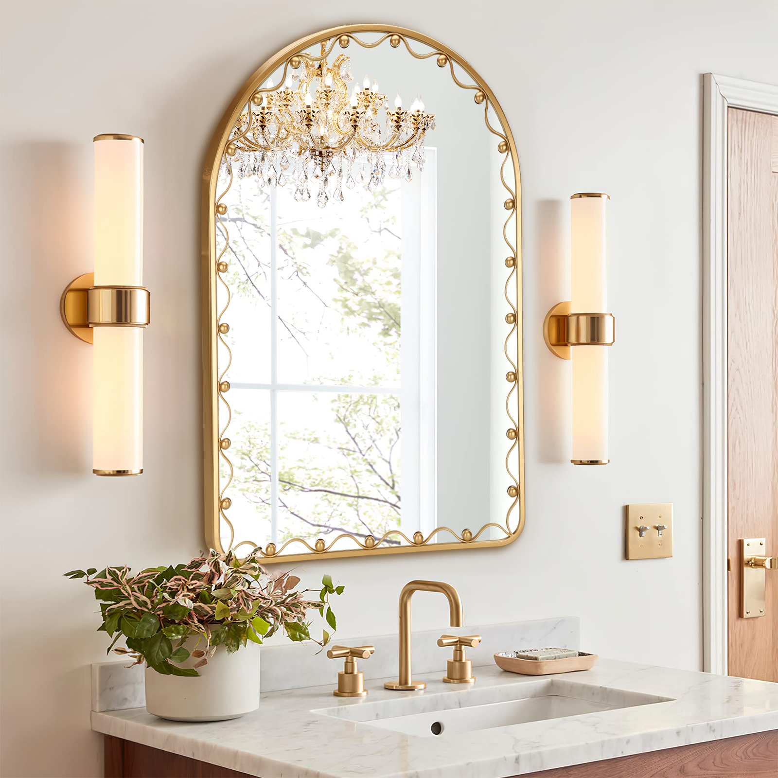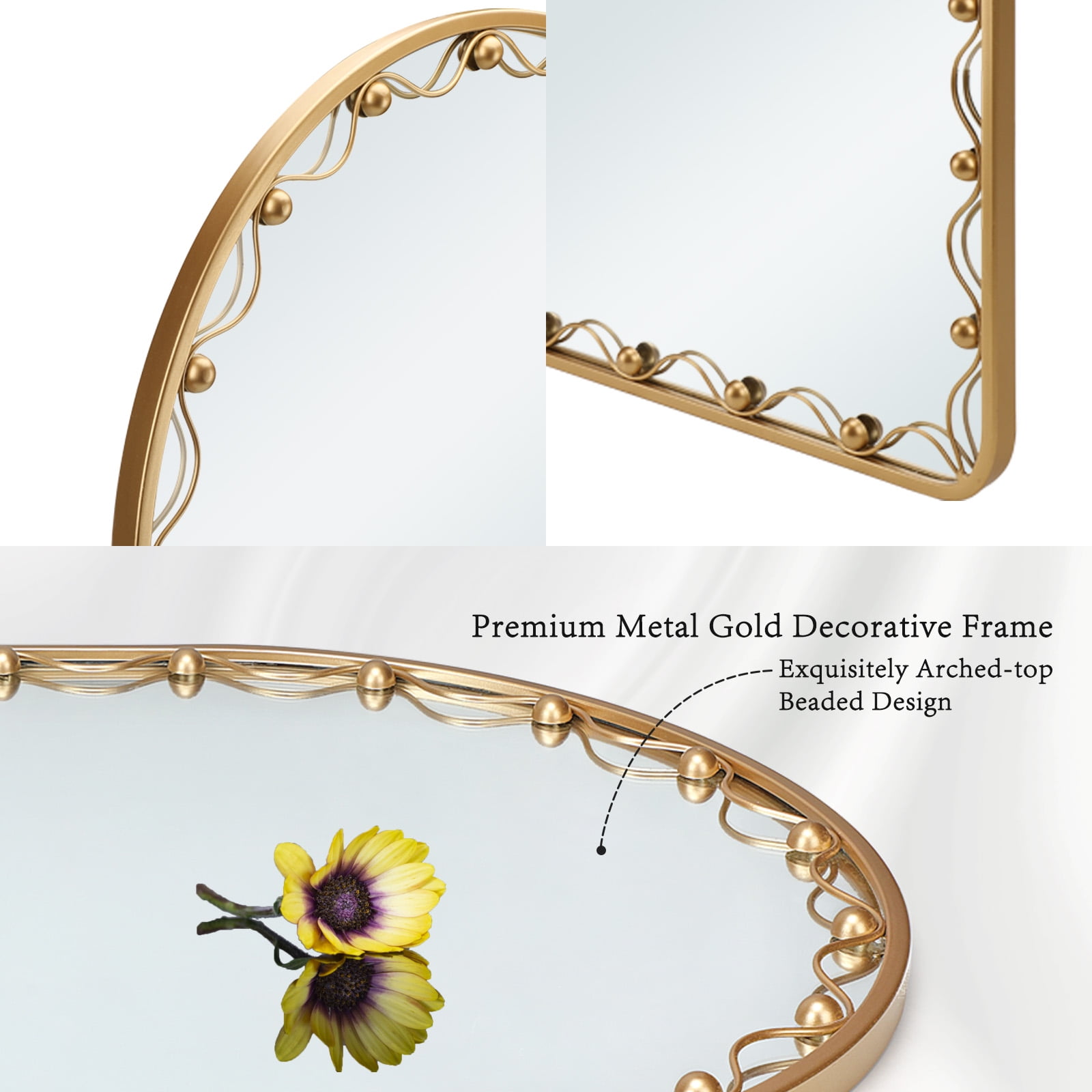TIMELY AFTER-SALES GUARANTEE – If there is any problem with the gold wall mirror during use, you can contact us in time. We will promptly provide you with after-sales services such as refunds or replacements.