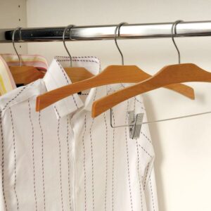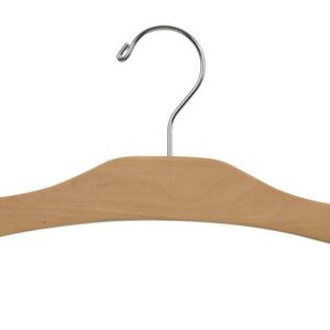 These richly designed hardwood hangers feature a strong space-saving flat body and a polished chrome swivel hook. Manufactured as one solid piece of wood, they are finished with a double coating of lacquer to prevent splintering. These elegant hangers are ideal for tops of all kinds including wide necked blouses and large shirts. These high quality, low cost hangers are manufactured to last you for a lifetime.