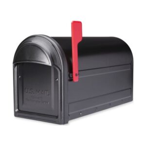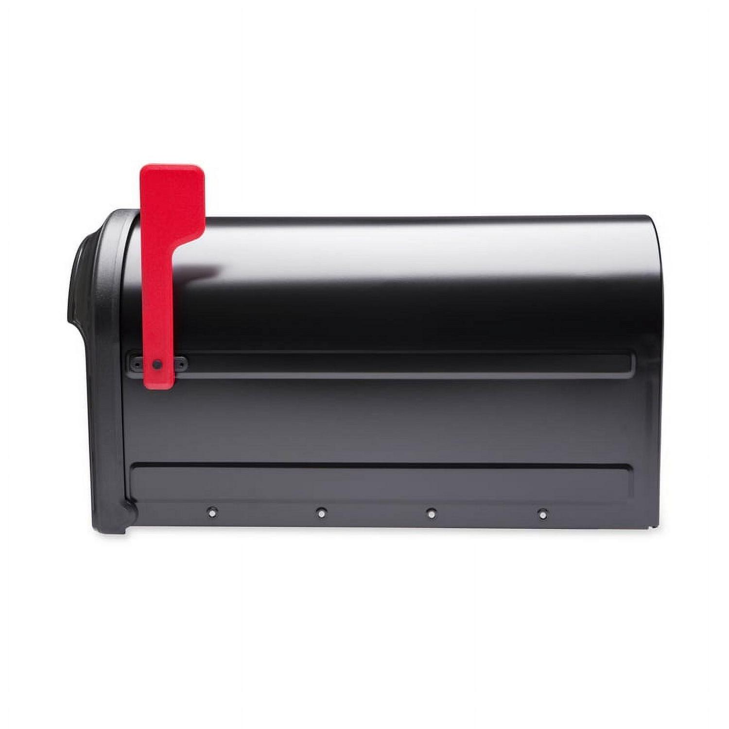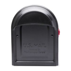 – Brand Name: Architectural Mailboxes Sub Brand: Barrington Material: Galvanized Steel Mailbox Type: Post Mounted Color: Black Product Type: Mailbox Height: 11 in. Width: 8.8 in. Length: 20.6 in. Rust Resistant: Yes Impact Resistant: Yes Outgoing Mail Indicator: Yes Lockable: No Finish: Powder Coated Letters and or Numbers Included: No US Postmaster General Approved: Yes Incoming Mail Opening Width: 7.6 in. Assembly Required: No Incoming Mail Opening Type: Pull Down Rear Access: No Incoming Mail Opening Height: 9.3 in. Red flag* Installation hardware not included with mailbox