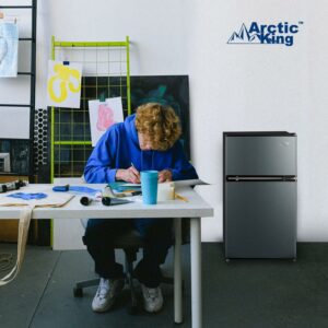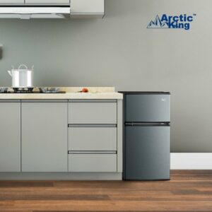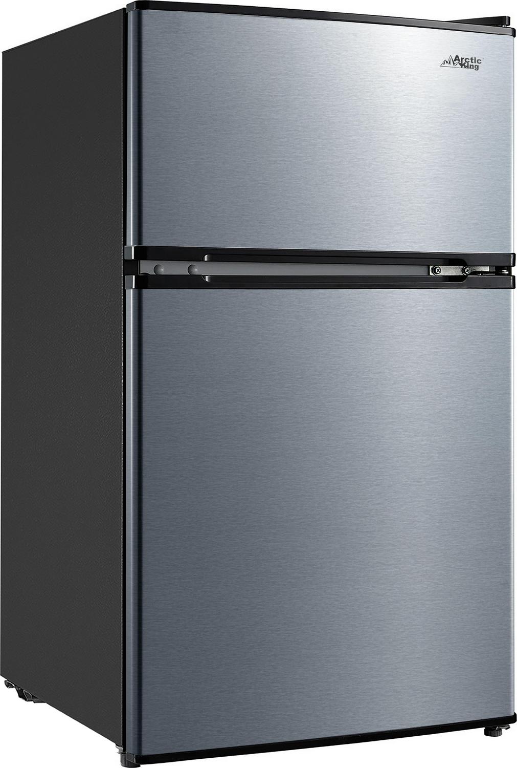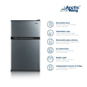Arctic King 3.2 Cu Ft Two Door Mini Fridge with Freezer, Stainless Steel: