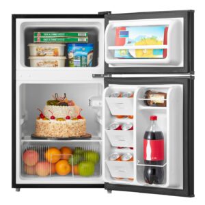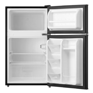 This fridge is the perfect fridge you’ve been looking for and needing for any room. The outside has a beautiful finish while the inside is energy-efficient and has a separate freezer compartment. The Arctic King 3.2 cu ft 2-Door Compact Refrigerator has ample storage space and an adjustable thermostat from so you can keep everything at the perfect temperature. Arctic King 3.2 cu ft 2-Door Mini Fridge not only keeps your favorite food perfectly fresh for longer, but its manual defrost setting allows you to clean whenever you want for optimal cooling and food preservation. Easily set the internal temperature according to your needs, and simply adjust the leg height as this compact cooler fits perfectly in any kitchen. It’s quiet operation and double doors, make it the perfect fridge for a household, dorm, beverages, and more. Can easily fit your full sized drinks and the crisper drawer makes storing your fruits and veggies a dream.