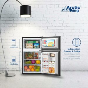 Arctic King 3.2 Cu Ft Two Door Mini Fridge with Freezer, Black: