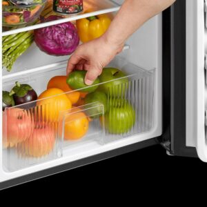 Measuring at 18.5″ by 19.4″ by 33.3″, this mini fridge provides ample space for storing your favorite beverages, snacks, and fresh produce. The separate freezer compartment allows you to store frozen goods, such as ice cream, frozen meals, and ice cubes, ensuring you have everything you need in one convenient unit.